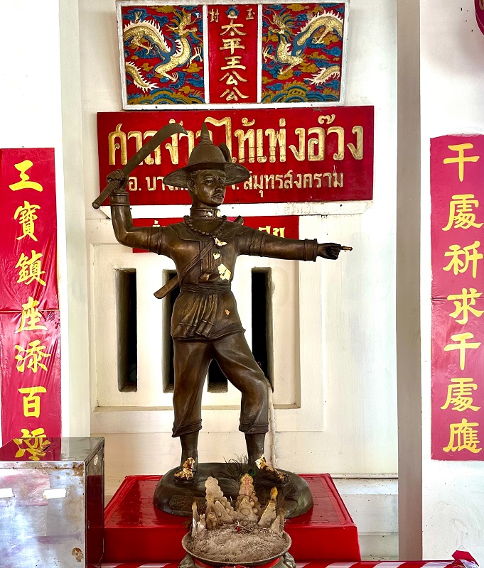 “ศาลเจ้าไท้เพ่งอ๊วงกง” ไปกราบบูชาขอพรกันได้ครับก็ขึ้นอยู่กับความเชื่อหรือบุญวาสนาของแต่ละท่านด้วยและตามความเชื่อของแต่ละคนขอบอกตรง ๆ ศาลเจ้าไท้เพ่งอ๊วงกงหรือศาลสมเด็จพระเจ้าตากสินริมน้ำแม่กลองตำบลบางกุ้ง อําเภอบางคนที จังหวัดสมุทรสงคราม น่าไปประกอบพิธีขอพรสิ่งศักดิ์สิทธิ์และหาข้อมูลที่เกี่ยวกับเรื่องราวกองกำลังของสมเด็จพระเจ้าตากสินมหาราช ส่วนระฆังในศาลเจ้าเป็นระฆังเก่าแก่มีภาษาจีนอยู่ด้วยน่าชมมากจริง ๆ ขอบคุณอาเฮียอัฏฐพร อารักษ์โพชฌงค์หรืออาเฮียจุก ที่เล่าเรื่องราวเกี่ยวโบสถ์ร้างและการได้พบพระบรมฉายาลักษณ์สมเด็จพระเจ้าตากสินมหาราชหรือสมเด็จพระเจ้ากรุงธนบุรี ไปกราบบูชาขอพรกันได้ครับ “กินเที่ยวทั่วไทย เที่ยวเมืองไทยไม่ไปไม่รู้ ถ้าอยากรู้ต้องออกเดินทางไป…กับ…ผมหนุ่ม-สุทน” แล้วฝากติดตามฟังรายการ “กินเที่ยวทั่วไทยไปกับพี่หนุ่ม-สุทน รุ่งธัญรัตน์” ทางคลื่นข่าว fm 100.5 mhz ฟังเรื่องเล่าประวัติศาสตร์ วิถีชุมชน วัฒนธรรมและอาหารถิ่นของชุมชนได้ทุกวันอาทิตย์เวลา 10.10-11.00 น. ขอบคุณและสวัสดีครับ
