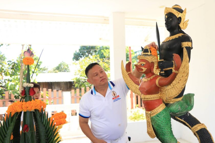 เมื่อวันที่ 23 ธันวาคม 2566 เวลา 10.00 น.ที่มูลนิธิพระราหู สถานปฏิบัติธรรมหิรัณย์พัฒน์ ตำบลบัวลอย อำเภอหนองแค จังหวัดสระบุรี ดร.หิมาลัย ผิวพรรณ คณะที่ปรึกษารองนายกรัฐมนตรี (นายพีระพันธุ์ สาลีรัฐวิภาค )/ประธานที่ปรึกษา”มูลนิธิพระราหู”พร้อม ภริยา รวมทั้ง คุณหทัยรัตน์ ผิวพรรณ ได้นำคณะผู้เลื่อมใสศรัทธาร่วมพิธีสักการะบวงสรวง หลวงพ่อบ้านแหลม (จำลอง) ทำบุญถวายภัตตาหารเพลแด่พระสงฆ์ รวมทั้ง พิธีบวงสรวงองค์พระราหู ประจำปี 2566 เพื่อเสริมสิริมงคล