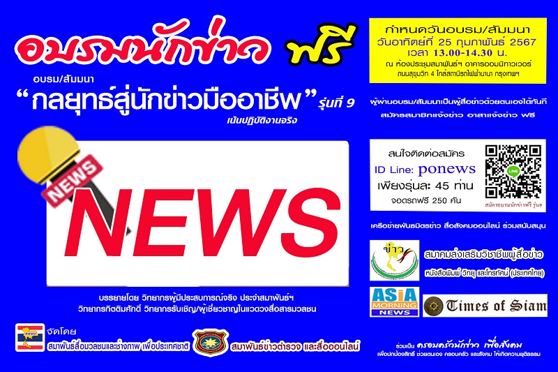 ช่วงที่ 1 “กลยุทธ์สู่นักข่าวมืออาชีพ” รุ่นที่ 9 (ฟรีเฉพาะช่วงที่ 1)