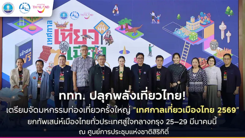 ททท. ปลุกพลังเที่ยวไทย! เตรียมจัดมหกรรมท่องเที่ยวครั้งใหญ่ “เทศกาลเที่ยวเมืองไทย 2569” ยกทัพเสน่ห์เมืองไทยทั่วประเทศสู่ใจกลางกรุง 25–29 มีนาคมนี้ ณ ศูนย์การประชุมแห่งชาติสิริกิติ์