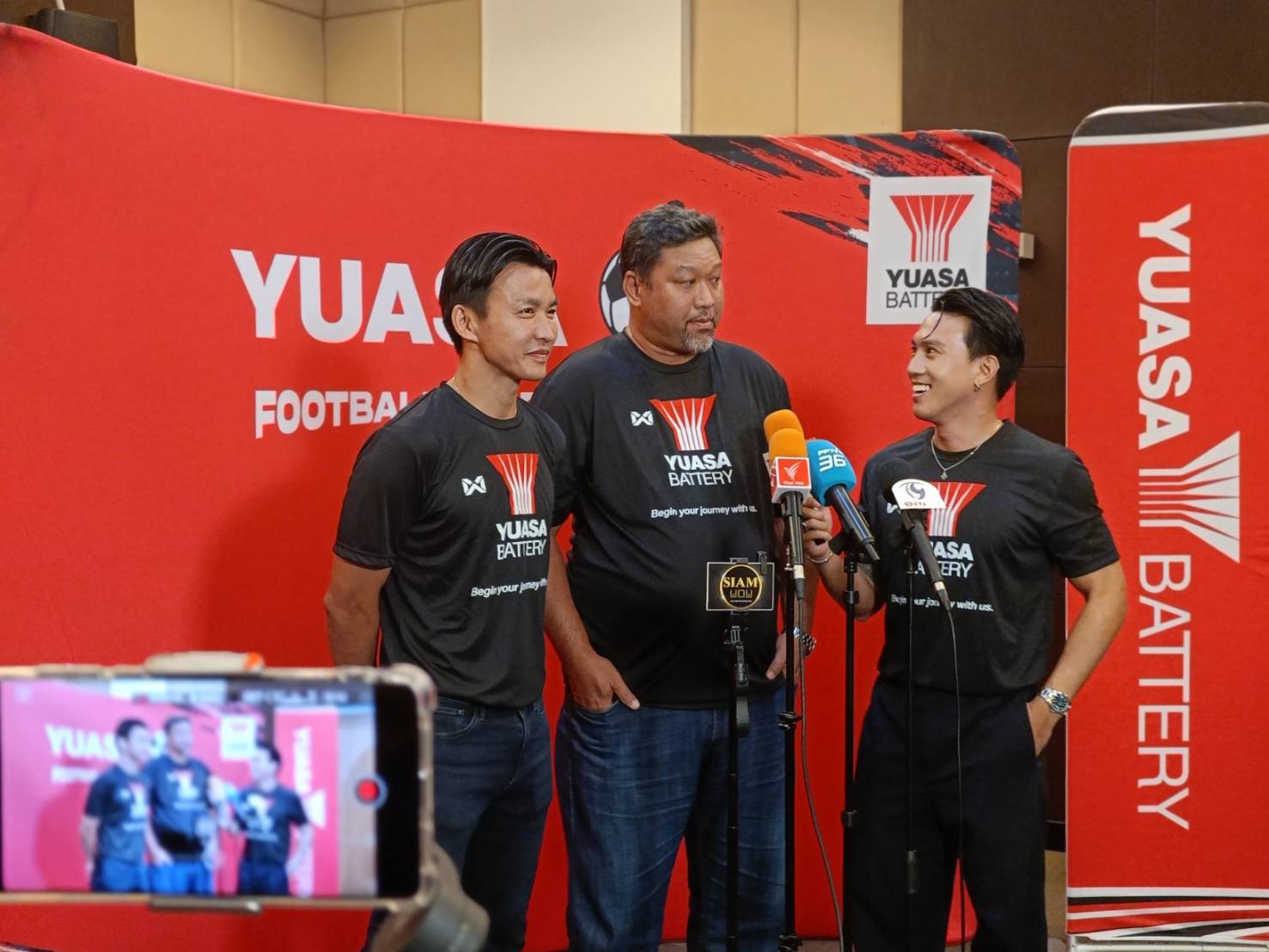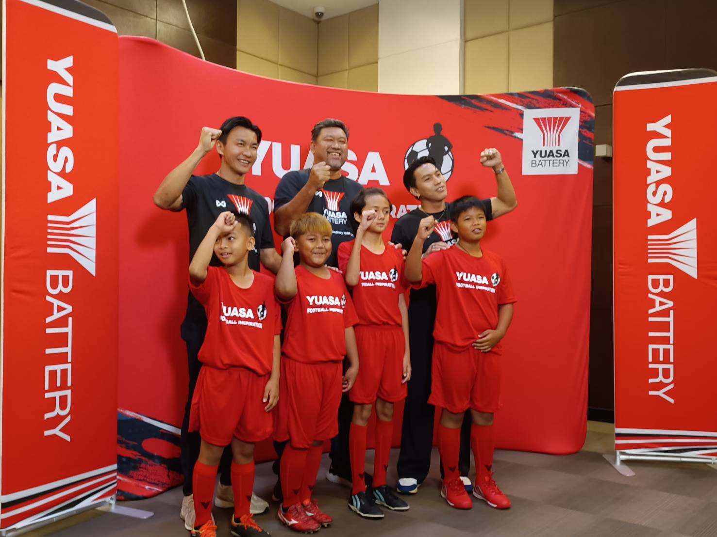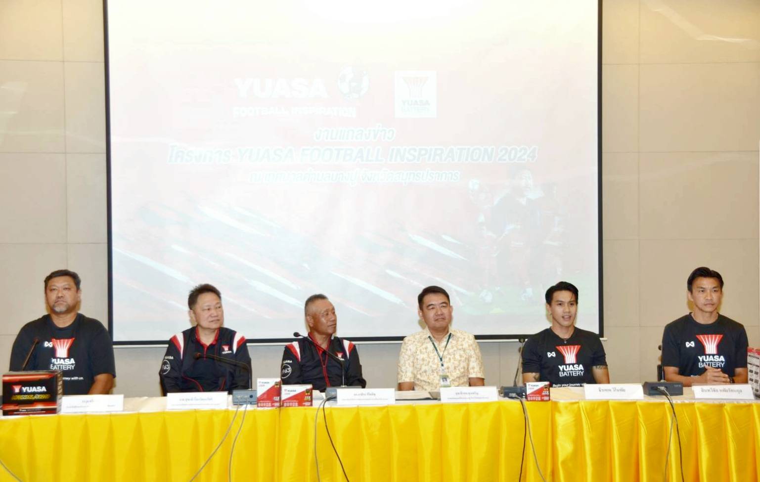 นายธีรพล ชุนเจริญ นายกเทศมนตรีตำบลบางปู จังหวัดสมุทรปราการ มร.อาคิระ คิโยมิซุ ประธานเจ้าหน้าที่บริหาร และนายสุขแท้ เรืองวัฒนะโชติ ประธานเจ้าหน้าที่ปฏิบัติการ บริษัท ยั่วช่าแบตเตอรี่ ประเทศไทย จำกัด (มหาชน) ร่วมงานแถลงข่าวกิจกรรม Yuasa Football Inspiration 2024 โดยมี “โค้ชโย่ง” วรวุธ ศรีมะฆะ ผู้ฝึกทักษะและผู้ฝึกสอนทีมชาติ “ลีซอ” ธีรเทพ วิโนทัย และ “ตี๋” สินทวีชัย หทัยรัตนกุลณ สองอดีตนักฟุตบอลทีมชาติไทย ร่วมแถลงข่าวด้วย ณ เทศบาลบางปู จังหวัดสมุทรปราการ เมื่อวันที่ 14 มีนาคม 2567