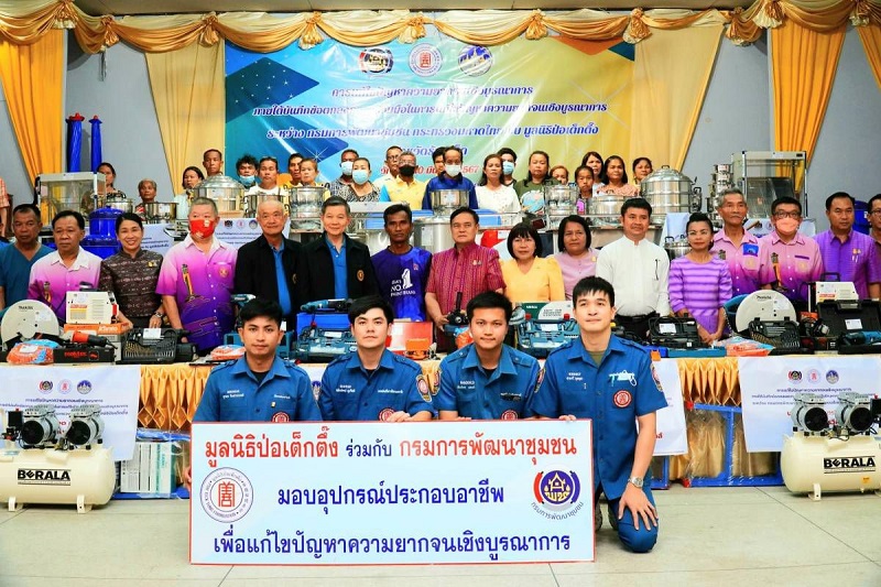 โครงการแก้ไขปัญหาความยากจนเชิงบูรณาการ มูลนิธิป่อเต็กตึ๊ง ได้สนับสนุนอุปกรณ์ประกอบอาชีพ ช่วยเหลือครัวเรือนยากจน ตามบันทึกข้อตกลงความร่วมมือแก้ไขปัญหาความยากจน ระหว่างกรมการพัฒนาชุมชนและมูลนิธิป่อเต็กตึ๊ง ซึ่งมูลนิธิฯ ได้จัดงบประมาณดำเนินการเพื่อจัดหาวัสดุอุปกรณ์การประกอบอาชีพมอบให้แก่ครัวเรือนยากจน ให้สามารถประกอบอาชีพเลี้ยงตนเองและครอบครัว โดยในกลุ่มเป้าหมายแรกดำเนินการในพื้นที่ภาคกลาง 17 จังหวัด รวม 98 ครัวเรือน ต่อมา ได้ดำเนินการในพื้นที่จังหวัดทางภาคเหนือ 17 จังหวัด รวม 230 ครัวเรือน ซึ่งได้ดำเนินการเป็นที่เรียบร้อยแล้ว และในขณะได้พิจารณาพื้นที่ภาคตะวันออกเฉียงเหนือ รวม 20 จังหวัด ประกอบด้วย จังหวัดบุรีรัมย์ สุรินทร์ กาฬสินธุ์ ชัยภูมิ นครราชสีมา อุดรธานี มุกดาหาร หนองบัวลำภู บึงกาฬ ยโสธร ศรีสะเกษ มหาสารคาม ขอนแก่น อุบลราชธานี ร้อยเอ็ด อำนาจเจริญ สกลนคร เลย หนองคาย และ นครพนม ซึ่งปัจจุบันทางมูลนิธิป่อเต็กตึ๊งได้ลงพื้นที่มอบไปแล้วรวมทั้งสิ้น 10 จังหวัด 237 ครัวเรือน คิดเป็นมูลค่าทั้งสิ้น 4,928,485 บาท (สี่ล้านเก้าแสนสองหมื่นแปดพันสี่ร้อยแปดสิบห้าบาทถ้วน)