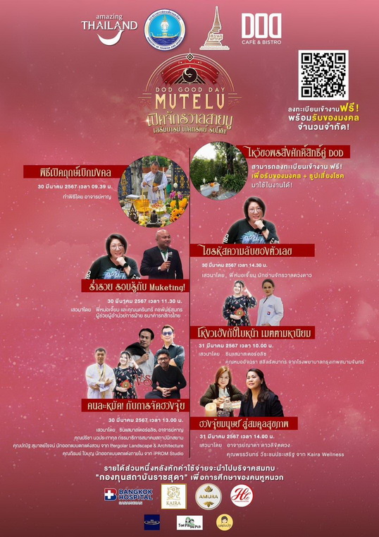 ใครที่เป็นสายมูห้ามพลาด! กับงานเปิดจักรวาลสายมู “DOD GOOD DAY MUTELU” วันที่ 30-31 มีนาคม 2567 ตั้งแต่เวลา 9.00 น. เป็นต้นไป ณ DOD Café & Bistro อ.สามพราน จ.นครปฐม