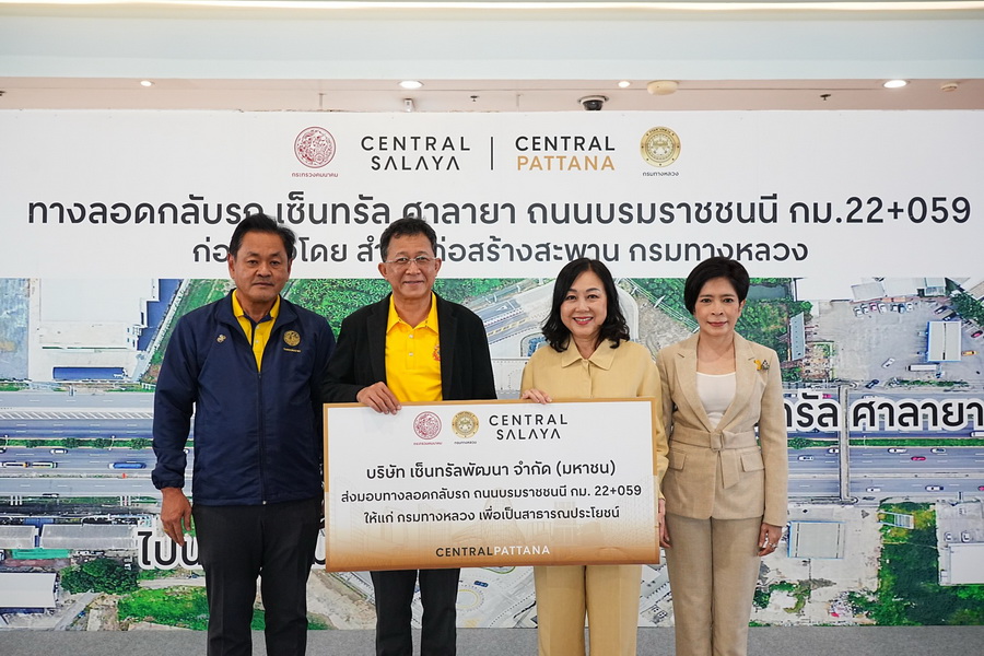 กรุงเทพฯ – บริษัท เซ็นทรัลพัฒนา จำกัด (มหาชน) มุ่งมั่นยกระดับคุณภาพชีวิตของผู้คนและชุมชน มอบเงินสนับสนุนกว่า 112 ล้านบาท ให้กับกรมทางหลวง กระทรวงคมนาคม เพื่อดำเนินก่อสร้างทางลอดกลับรถบนถนนบรมราชชนนี (ทางหลวงหมายเลข 338) เพื่ออำนวยความสะดวกและความปลอดภัยให้แก่ประชาชน บรรเทาปัญหาการจราจรหนาแน่น และเพิ่มประสิทธิภาพในการรองรับปริมาณจราจรที่เพิ่มขึ้นในอนาคต โดยงานนี้ได้รับเกียรติจาก นายสราวุธ ทรงศิวิไล อธิบดีกรมทางหลวง นายศุภโชค มีอำพล ผู้อำนวยการสำนักงานทางหลวงที่ 13 กรุงเทพ ร่วมด้วยคณะผู้บริหารเซ็นทรัลพัฒนา นำโดย นางสาววัลยา จิราธิวัฒน์ กรรมการผู้จัดการใหญ่และประธานเจ้าหน้าที่บริหาร บมจ.เซ็นทรัลพัฒนา และ นางสาวรุจิเรศ นีรปัทมะ ผู้ช่วยกรรมการผู้จัดการ สายงานรัฐกิจสัมพันธ์และสรรหาที่ดิน บมจ.เซ็นทรัลพัฒนา ร่วมพิธีมอบทางลอดกลับรถ