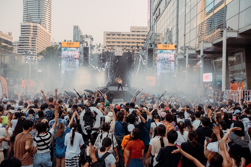 ทัพศิลปินเบอร์ต้นของประเทศ Palmy TATTOO Color, POLYCAT , SARAH SALORA, ร่วมด้วยศิลปิน วัยรุ่นตัวท็อป อาทิ Rooftop, Slapkiss, Chili Fish Cigarettes Summer George, Sauce, LYKN, Perses, Atlas, URBOY TJ และ Tillybird AGAIN, BAMM, NaNon, 4EVE, PSYCHIC FEVER, Proxie มาสร้างความสุข ระเบิดความมันส์ และเปิดเวทีให้น้องๆ School Bands ปล่อยพลังโชว์ความสามารถทางดนตรีพร้อมชวนทุกคนร่วมเล่นน้ำ เติมความสุข สนุกกับการใช้ชีวิตอย่างเต็มที่ กับกิจกรรมตลอด 3 วันเต็ม ตั้งแต่วันที่ 19-21 เมษายน 2567 นี้ ณ ลานหน้าเซ็นทรัลเวิลด์ โดย FWD ประกันชีวิต จัดฟรีคอนเสิร์ตใหญ่พร้อมสถานที่ให้เล่นน้ำกลางเมือง “FWD Music Live Fest 3 #TimeToPlaySongkran” ฉลองวันไหลสงกรานต์ครั้งแรกที่กรุงเทพฯ ควบคู่กับการสร้างการรับรู้แบรนด์ ผ่านการใช้ กลยุทธ์ Brand Experience สร้างการจดจำแบรนด์ ผ่านประสาทสัมผัสและการมีประสบการณ์ร่วม เพื่อให้แบรนด์เข้าไปอยู่ในใจและไลฟ์สไตล์ของผู้คน มุ่งเจาะกลุ่ม Young Gen
