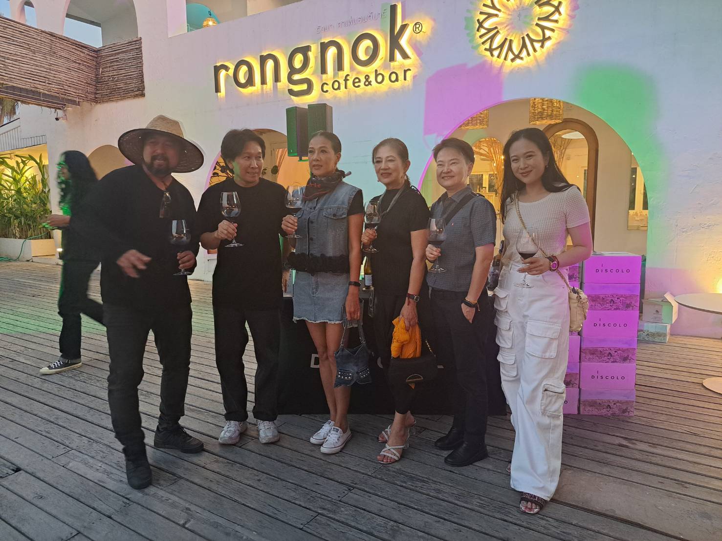 บรรยากาศของงานต้อนรับผู้ร่วมงานด้วยไวน์ Discolo โดยมีบุคคลในวงการบันเทิงมาร่วมงาน อาทิ มาดามกบ-ปภัสรา เตชะไพบูลย์ ควงคู่ลูกสาวคนสวยน้องเหนือ-ดิสรยา เตชะไพบูลย์ มาร่วมงาน รวมถึงตุ๊กกี้-สุดารัตน์ บุตรพรม ที่ควงคู่มากับสามี บูบู้ ฯลฯ ก่อนที่เสียงเพลงจะเริ่มบรรเลงด้วยวงเปิด “โหน่ง หัสดี × Never Gets Old” เน้นเล่นเพลง สากลยุค 60-90 สลับกับเชิญศิลปิน เล็ก ริมแดง และ ใหม่ สิบล้อ ซึ่งเรียกน้ำย่อยในบทเพลงคันทรี่ ร็อค ยุค 60s