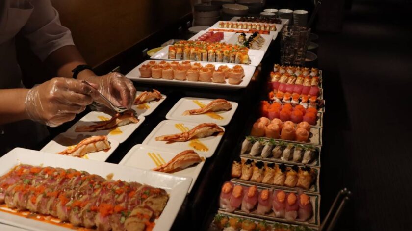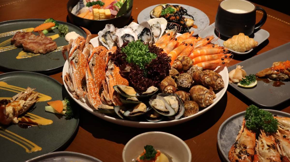 เชิญลิ้มลอง “เซตสามสหายซาชิมิพรีเมียม” ประกอบด้วย “โฮตาเตะ (หอยเชลล์)” เนื้อนุ่มละมุนลิ้น ตัวโตอร่อยเต็มคำ “ฮามาจิ” เนื้อแน่น หวานฉ่ำ สดใหม่ “แซลมอน” ชิ้นหนา สีส้มลายสวยงาม บริการรวมในบุฟเฟต์นานาชาติมื้อเย็น ระหว่าง เวลา 18.00 – 22.00 น.