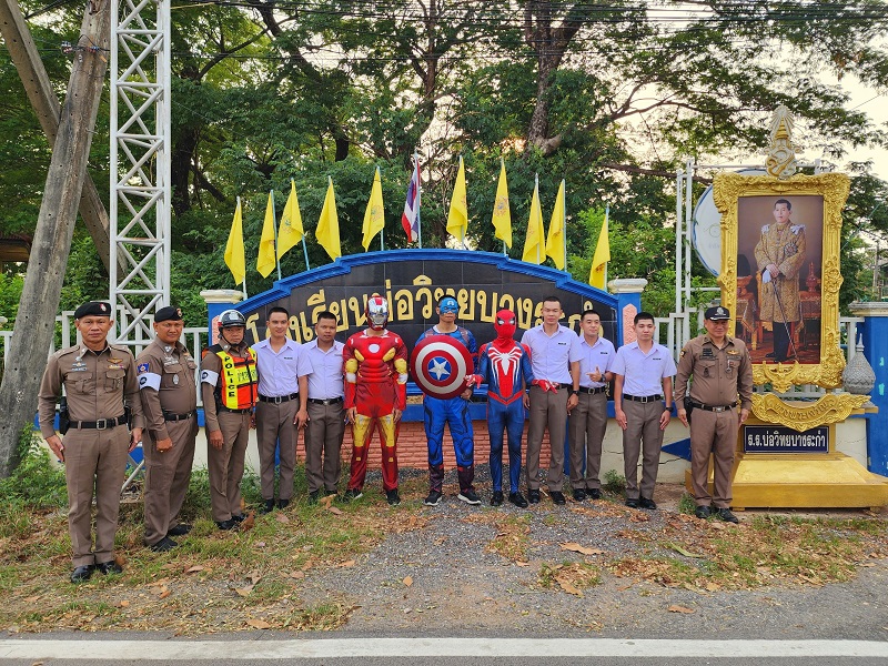 เมื่อเวลา 07.00 น. วันที่ 17 พ.ค.67 ผู้สื่อข่าวรายงานว่า พ.ต.อ.สมเกษม จารักษ์ ผกก.สภ.บางระกำ พร้อมด้วยชุดจราจร สภ.บางระกำ และ นักเรียนนายสิบตำรวจฝึกปฏิบัติงาน นำทีมอเวนเจอร์ ประกอบด้วย สไปเดอร์แมน,ไอรอนแมน, กับตันอเมริกา ออกอำนวยความสะดวกด้านการจราจร สร้างสีสัน รณรงค์ปลูกฝังวินัยจราจร แก่ผู้ใช้รถใช้ถนน เน้น “ข้ามทางม้าลายและหยุดรถให้คนข้ามถนน” เพื่อลดอุบัติเหตุและความปลอดภัยของทุกคนบนท้องถนน พร้อมอำนวยความสะดวกการจราจรบริเวณหน้าโรงเรียนบ่อวิทย์ อ.บางระกำ จว.พิษณุโลก ดูแลความปลอดภัยแก่น้อง ๆ นักเรียนช่วยจูงมือพาเดินข้ามถนน ทางม้าลาย เข้าสู่โรงเรียนด้วยความปลอดภัย ช่วยดูแลขึ้น-ลงรถโดยสารประจำทาง และ คอยช่วยโบกรถที่สัญจรไปมาให้มีความสะดวกขึ้น ณ บริเวณหน้าโรงเรียนบ่อวิทย์ อ.บางระกำ จว.พิษณุโลก