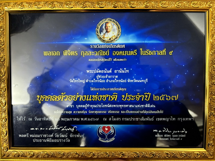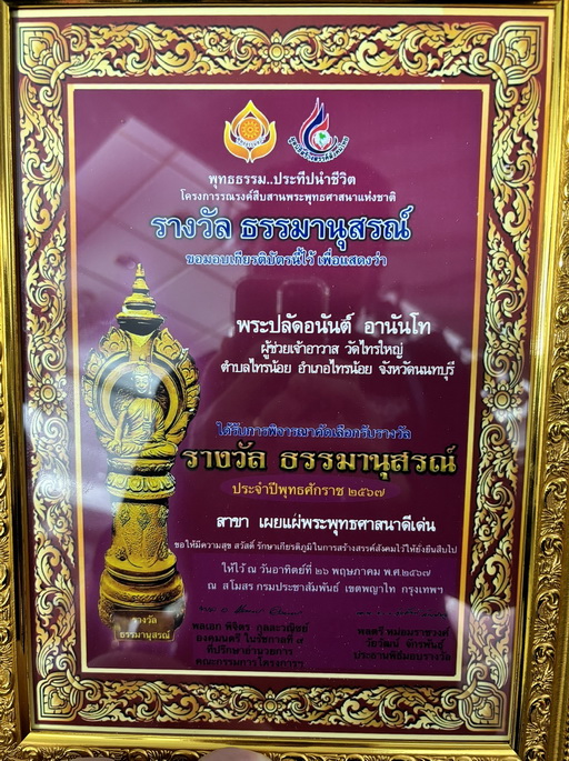ภายในงาน มี พระปลัดอนันต์ อานันโท ผู้ช่วยเจ้าอาวาส วัดไทรใหญ่ จ.นนทบุรี ได้รับรางวัล บุคคลตัวอย่างแห่งชาติประจำปี 2567 สาขา บุคคลผู้ทำคุณประโยชน์ ต่อพระพุทธศาสนาแห่งชาติดีเด่น และรางวัลธรรมานุสรณ์ ประจำปีพุทธศักราช 2567 สาขาเผยแผ่พระพุทธศาสนาดีเด่น