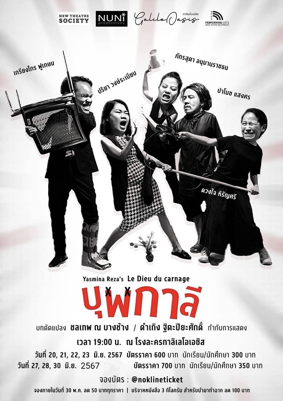ศึกครั้งนี้ใหญ่หลวงนัก! “บุพกาลี” ละครตลกร้าย จากบทละคร “Le Dieu du carnage” โดย ยัสมินา เรซา บทการแสดงโดย ชลเทพ ณ บางช้าง กำกับการแสดงโดย ดำเกิง ฐิตะปิยะศักดิ์ ซึ่งสร้างความลือลั่นกับการทำละครเรื่องนี้มาครั้งหนึ่งแล้วเมื่อ 6 ปีก่อนที่โรงละครทองหล่อ อาร์ต สเปซ กลับมาคราวนี้เตรียมเปิดศึกครั้งใหม่พร้อมนักแสดงชุดเดิมสามคน นั่นคือ ดวงใจ หิรัญศรี รับบท อุมา, ภัทรสุดา อนุมานราชธน รับบท มัทนี และ เกรียงไกร ฟูเกษม รับบท กฤษณ์ พร้อมด้วยสองนักแสดงคนใหม่ที่ไม่ใช่นักแสดงหน้าใหม่ ปาโมช แสงศร (ปราโมทย์ แสงศร) ในบท วิษณุ สามีของอุมา และ ปริยา วงษ์ระเบียบ ในบท มัทนี (double กับ ภัทรสุดา) เข้ามาร่วมทีมด้วยอีกสองคน
