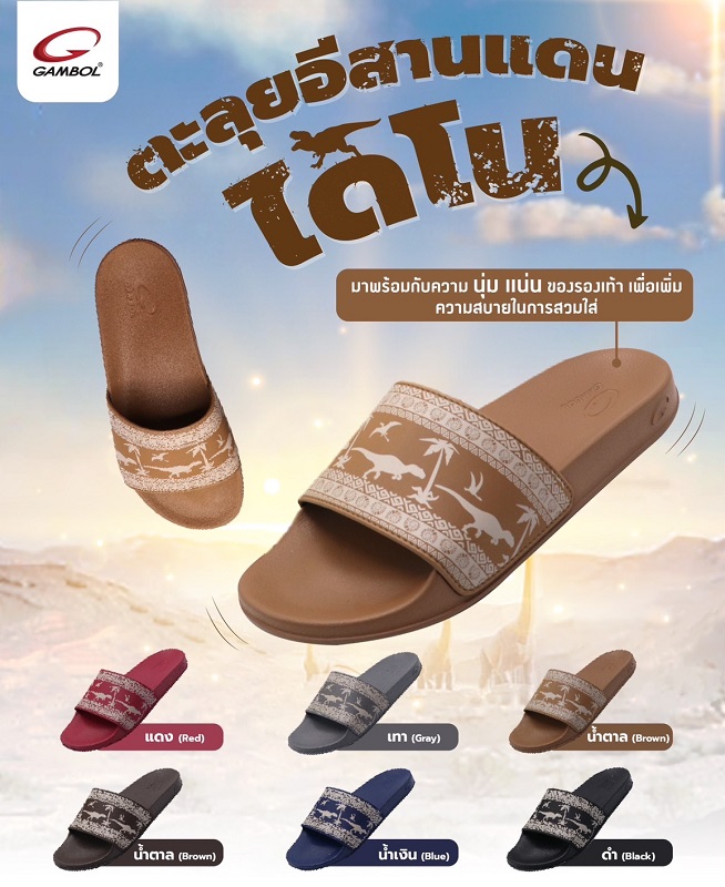 นับว่าเป็นรองเท้าแตะแบรนด์ไทยที่เน้นการผลิตรองเท้าคุณภาพ พิถีพิถัน ใส่ใจทุกขั้นตอนมาอย่างต่อเนื่อง ตั้งแต่การออกแบบที่เป็นเอกลักษณ์เฉพาะ การคัดสรรวัตถุดิบ รวมถึงนวัตกรรมการผลิตเฉพาะด้วย G-Bold Technology™ ที่ทำให้สินค้า นุ่ม ทน เบา สบาย ตามสไตล์ GAMBOL ที่พร้อมเดินทางไปกับผู้สวมใส่ สร้างความมั่นใจและช่วยซัพพอร์ตทุกย่างก้าว ล่าสุดส่ง 2 คอลเลกชั่น รองเท้านิวส์ สไปเดอร์ และไดโน่ ลวดลายสุดไอคอนิกมาเพิ่มสีสันและความสดใสให้สนุกไปกับรองเท้าที่ใช่ ใส่แบบไหนก็สบาย