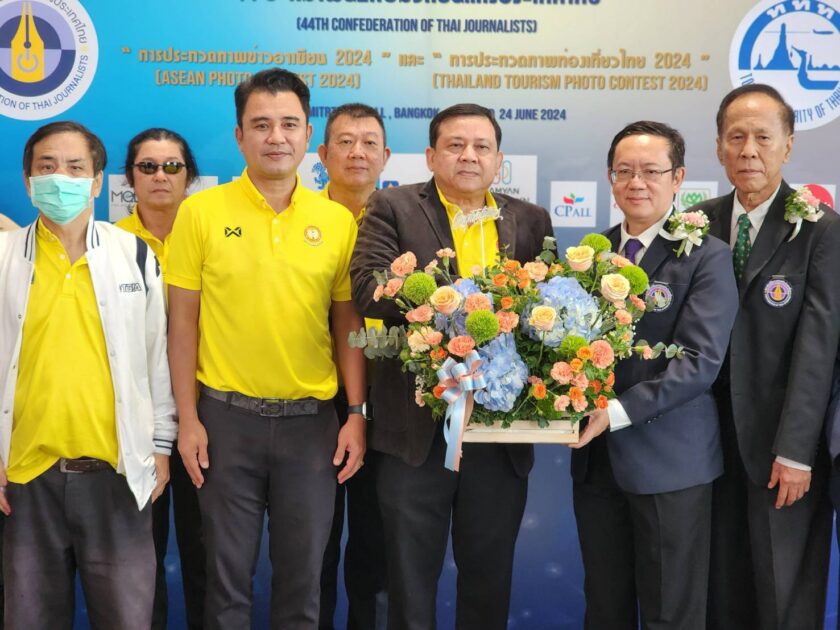 โดยมี น.ส.ฐาปนีย์ เกียรติไพบูลย์ ผู้ว่าการการท่องเที่ยวแห่งประเทศไทย, มงคล บางประภา ประธานสมาพันธ์สื่อมวลชนแห่งประเทศไทย, เทพชัย หย่อง ประธานจัดการประกวดภาพข่าวอาเซียน 2024, ชวรงค์ ลิมป์ปัทมปาณี ประธานสภาการสื่อมวลชนแห่งชาติ พร้อมด้วยนายกสมาคม 12 สมาคม, สมาชิกสื่อมวลชนชาติอาเซียนและจีน มาร่วมงานกันอย่างพร้อมเพรียง โดย ดร.เอก์ เหลืองสอาด นายกสมาคมผู้สื่อข่าวต้านคอร์รัปชั่น (ประเทศไทย) พร้อมด้วยคณะกรรมการบริหารและสมาชิกสมาคมผู้สื่อข่าวต้านคอร์รัปชั่น (ประเทศไทย) ได้มอบกระเช้าดอกไม้ให้กับ มงคล บางประภา ประธานสมาพันธ์สื่อมวลชนแห่งประเทศไทย ในโอกาสครบรอบ 44 ปี สมาพันธ์สื่อมวลชนแห่งประเทศไทย