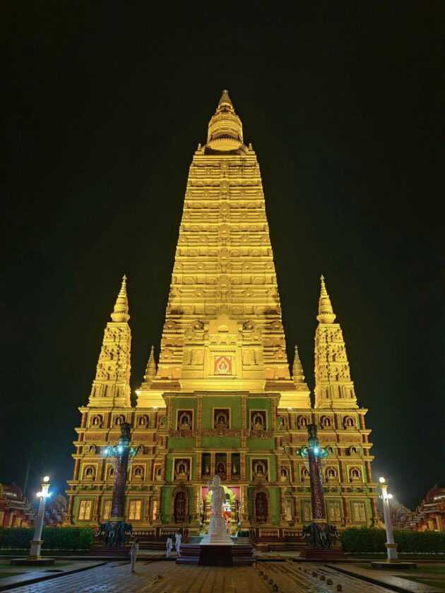 พร้อมเสนอกรรมการมหาเถรสมาคม ขอจัดสร้างพุทธสถานและพระมหาธาตุเจดีย์เฉลิมพระเกียรติ 50 พรรษา มหาวชิราลงกรณ เพื่อเฉลิมพระเกียรติพระบาทสมเด็จพระเจ้าอยู่หัว ซึ่งขณะนั้นดำรงพระราชอิสริยยศ สมเด็จพระบรมโอรสาธิราช เจ้าฟ้ามหาวชิราลงกรณ สยามมกุฎราชกุมาร พระมหาธาตุเจดีย์มีความสูงประมาณ 95 เมตร เป็นเจดีย์ที่มีความสูงที่สุดในภาคใต้ ประดับตกแต่งคล้ายคลึงกับมหาเจดีย์พุทธคยา สถานที่พระพุทธเจ้าตรัสรู้ ประเทศอินเดีย
