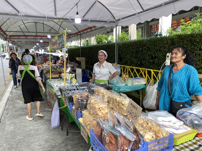 สำหรับรายชื่อร้านค้าที่มาออกบูธ เช่น  ข้าวเหนียวมะม่วงครัวคุณกันต์, รัานน้ำพริกลุงพุด ขายน้ำพริกและไข่เค็ม ผลิตภัณฑ์ OTP, ร้านสมุนไพร ผลิตภัณฑ์ OTOP, ร้านผลิตภัณฑ์นวัตกรรมสำนักงานเขตพระโขนง สบู่และดินผสมเปือกไข่, รัานบัวลอยไข่หวาน, ร้านแกงเขียวหวานปลากรายหวงไข่, ร้านขนมบราวนี่ ฯลฯ