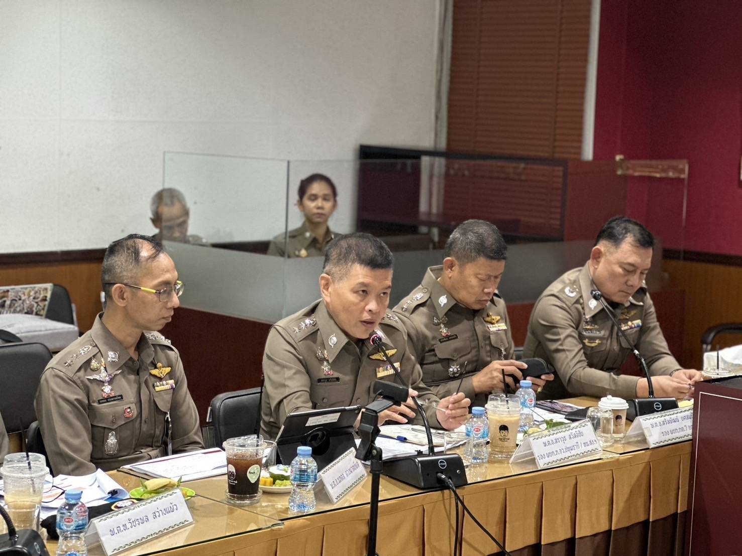 พล.ต.ท.อัคราเดช พิมลศรี ผู้ช่วย ผบ.ตร.(ปป 4) (สส 2) พร้อมด้วย พล.ต.ต.เมฒาวิศ ประดิษฐ์ผล ผู้ทรงคุณวุฒิ ตร. พ.ต.อ.สรัลพัฒน์ ยศสมบัติ รอง ผบก.กต.7 จต. พ.ต.อ.ศราวุธ สวัสดิชัย รอง ผบก.ภ.จว.ปทุมธานี / หน.สง.ฯ พร้อมคณะ ได้เดินทางมาประชุมติดตามความคืบหน้าการดำเนินคดี กรณีพบผู้เสียชีวิตจากการบริโภคสุราเถื่อน (เหล้ายาดอง) ในพื้นที่ บก.น.3 โดยมีพล.ต.ต.นพศิลป์ พูลสวัสดิ์ รอง ผบช.น. /รองหัวหน้าพนักงานสืบสวนสอบสวน
