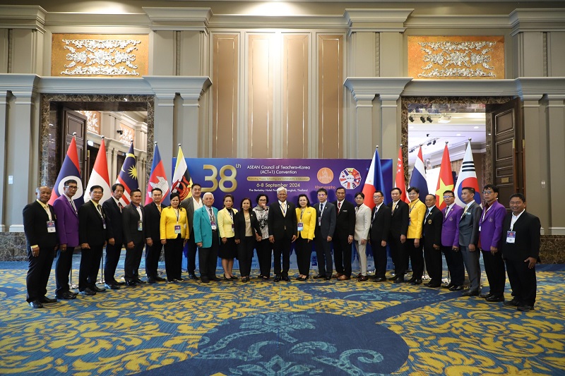 เมื่อวันที่ 7 ก.ย. 2567 ดร.สุเทพ แก่งสันเทียะ ปลัดกระทรวงศึกษาธิการ เป็นประธานเปิดการประชุมสภาครูอาเซียน+1 ครั้งที่ 38 The 38th ASEAN Council of Teachers + Korea (ACT+1) Convention ภายใต้หัวข้อ “Promoting Happy Schooling and Sustainability in Education: การส่งเสริมการเรียนรู้ ในโรงเรียนอย่างมีความสุขและความยั่งยืนในการศึกษา” ซึ่งจัดขึ้นระหว่างวันที่ 6 – 8 ก.ย. 67 ณ โรงแรม เดอะ เบอร์เคลีย์ ประตูน้ำ กรุงเทพมหานคร มี คณะกรรมการคุรุสภา ผู้บริหารระดับสูงของกระทรวงศึกษาธิการ ผศ.ดร.อมลวรรณ วีระธรรมโม เลขาธิการคุรุสภา ดร.สุดา สุขอ่ำ ผศ.ดร.พลรพี ทุมมาพันธ์ รองเลขาธิการคุรุสภา ผู้แทนองค์กรนานาชาติ หน่วยงานภาครัฐ ภาคเอกชน ผู้ประกอบวิชาชีพทางการศึกษาทั้งประเทศไทย และอาเซียน และผู้บริหารและพนักงานเจ้าหน้าที่สำนักงานเลขาธิการคุรุสภา ร่วมพิธี โดยผู้เข้าร่วมประชุม จำนวน 900 คน จาก 10 ประเทศสมาชิก ประกอบด้วย ประเทศบรูไนดารุสซาลาม ราชอาณาจักรกัมพูชา สาธารณรัฐอินโดนีเซีย สาธารณรัฐประชาธิปไตยประชาชนลาว สหพันธรัฐมาเลเซีย สาธารณรัฐฟิลิปปินส์ สาธารณรัฐสิงคโปร์ ราชอาณาจักรไทย สาธารณรัฐสังคมนิยมเวียดนาม และสาธารณรัฐเกาหลี