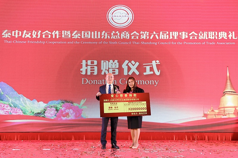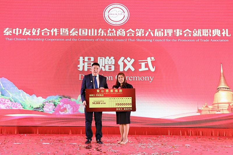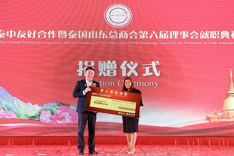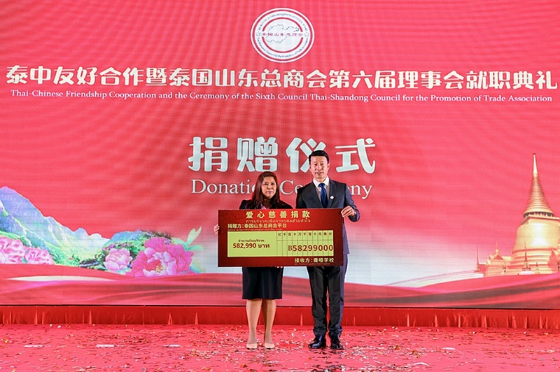 นายสื่อ ต้าถัว (Mr.Shi Datuo) กล่าวในสุนทรพจน์ว่า “อยู่ประเทศไทยเพื่อประเทศไทย อยู่ประเทศไทยรักประเทศไทย” เป็นแนวทางที่สมาคมฯ ยึดถือมาโดยตลอด นับตั้งแต่ก่อตั้งเป็นต้นมา สมาคมการค้าการส่งเสริมผู้ประกอบธุรกิจไทย-ซานตง ไม่เพียงแต่ประสบความสำเร็จในด้านการส่งเสริมความร่วมมือทางเศรษฐกิจไทย-จีน แต่ยังมีส่วนร่วมในกิจกรรมการกุศลเพื่อสนับสนุนการพัฒนาของสังคมไทย กิจกรรมการบริจาคในครั้งนี้ถือเป็นการกระชับความสัมพันธ์ฉันมิตรระหว่างจีนและไทย และยังสะท้อนให้เห็นถึงความรับผิดชอบในการตอบแทนต่อสังคมของสมาคมการค้าการส่งเสริมผู้ประกอบธุรกิจไทย-ซานตง และผู้ประกอบการจีนในประเทศไทย