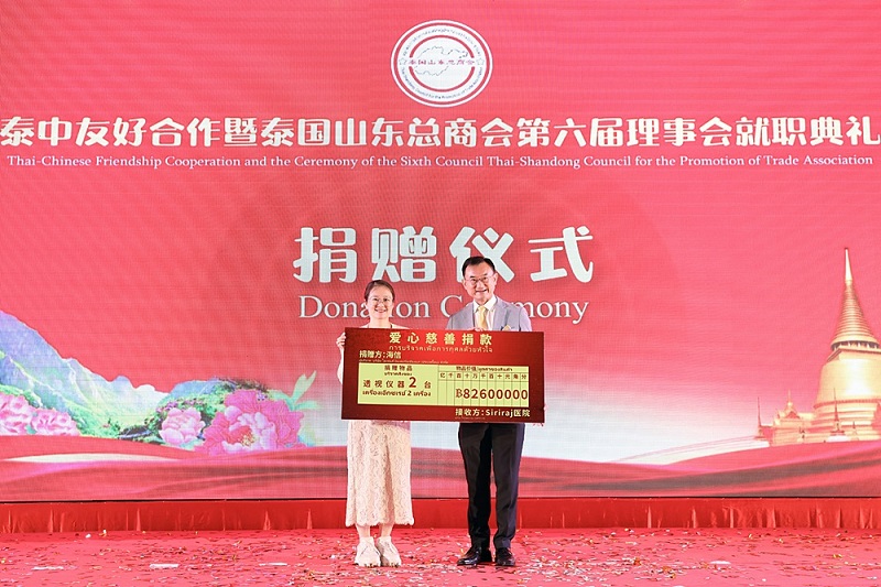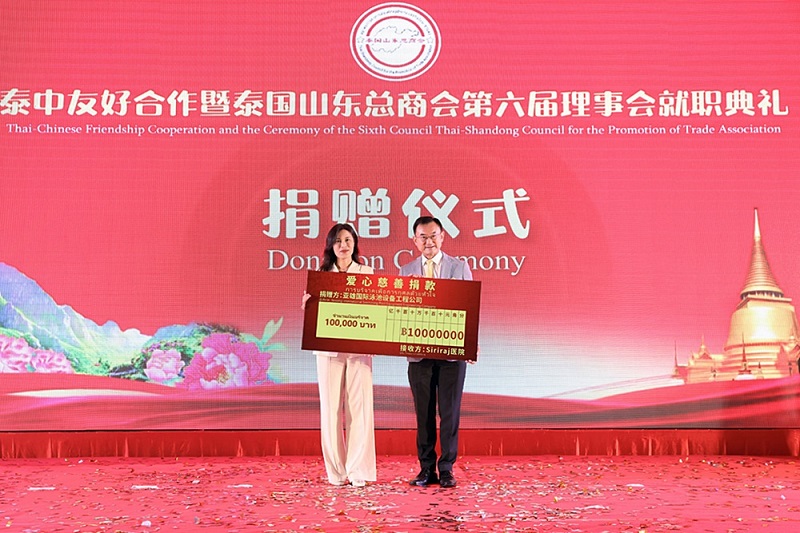 จุดสำคัญของงานในครั้งนี้คือการบริจาคเพื่อการกุศลโดยสมาคมการค้าการส่งเสริมผู้ประกอบธุรกิจไทย-ซานตง และสมาชิกได้ร่วมกันบริจาคเงินและสิ่งของให้กับโรงพยาบาลศิริราชและโรงเรียนเศรษฐเสถียร ในพระราชูปถัมภ์ มูลค่ารวมเกือบ 2 ล้านบาท โรงพยาบาลศิริราชเป็นโรงพยาบาลที่มีประวัติศาสตร์อันยาวนาน เป็นหนึ่งในโรงพยาบาลที่ใหญ่ที่สุดของประเทศไทย ซึ่งเป็นหัวใจสำคัญของระบบการรักษาพยาบาลของประเทศไทย และโรงเรียนเศรษฐเสถียร ในพระราชูปถัมภ์ เป็นโรงเรียนที่มอบการศึกษาให้แก่นักเรียนที่มีปัญหาทางการได้ยิน