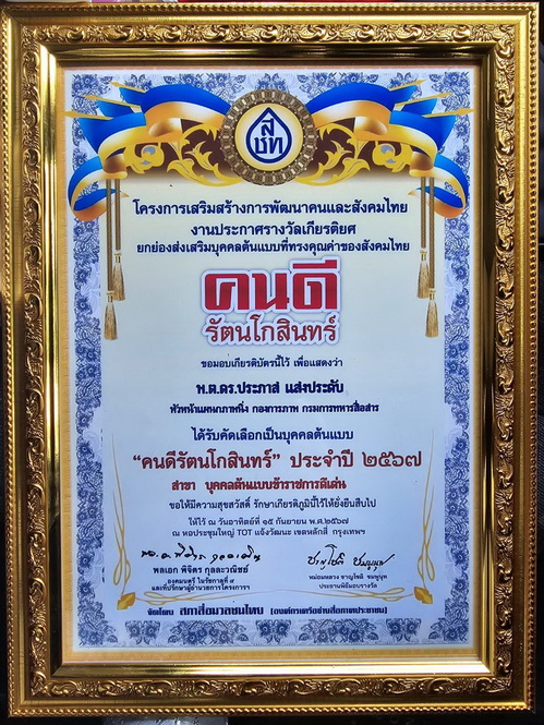 หนึ่งในผู้ที่ได้รับการยกย่องคือ พ.ต.ดร.ประภาส แสงประดับ หัวหน้าแผนกภาพนิ่ง กรมการทหารสื่อสาร ที่ได้รับรางวัลบุคคลต้นแบบ “คนดีรัตนโกสินทร์” สาขาข้าราชการดีเด่น