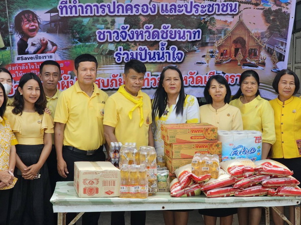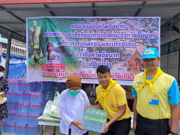 พระครูวิธานสุตาภิรมย์ เจ้าคณะตำบลเสือโฮก ผู้ช่วยเจ้าอาวาสวัดพระบรมธาตุ วรวิหาร   เปิดเผยว่า  จากเหตุการณ์ชาวบ้านที่จังหวัดเชียงรายประสบอุทกภัย ทางคณะสงฆ์จังหวัดชัยนาทไม่ได้นิ่งนอนใจ ภายใต้การนำของพระราชวชิรกิจจาทร เจ้าคณะจังหวัดชัยนาท เจ้าอาวาสวัดพระบรมธาตุ วรวิหาร ท่านได้รวบรวมผู้มีจิตศรัทธาบอกบุญตามสถานที่ต่าง ๆ ไม่ว่าจะเป็นประชาชนทั่วไป ห้างร้านต่างๆ รวมทั้งส่วนราชการ ได้ร่วมกันทำบุญ ไม่ว่าจะเป็นข้าวสาร มาม่า ปลากระป๋อง น้ำดื่ม อาหารแห้งต่างๆ และของใช้จำเป็น  รวมน้ำหนักกว่า 48 ตัน  เนื่องจากวันนี้หลวงพ่อเจ้าคณะจังหวัดไปประกอบศาสนกิจที่ประเทศอินเดีย จึงมอบหมายให้ พระมงคลกิจโกศล (หลวงปู่ฤๅษีตาไฟ) รองเจ้าคณะจังหวัดชัยนาท ปฏิบัติหน้าที่แทนเจ้าคณะจังหวัดชัยนาทได้เป็นประธานปล่อยขบวนรถบรรทุกสิ่งของ ซึ่งมีคณะสงฆ์และประชาชนส่วนนึงร่วมขบวนไปด้วย คาดว่าจะถึงเวลาพรุ่งนี้เช้า (18ก.ย.) และจะได้แจกจ่ายให้กับประชาชนชาวเชียงรายที่ประสบอุทกภัยต่อไป