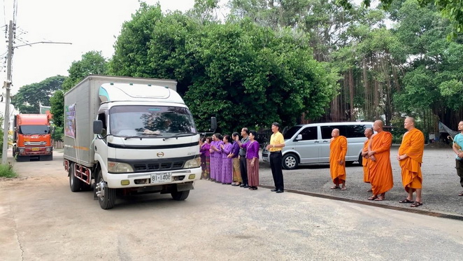 คณะสงฆ์จังหวัดชัยนาท ปล่อยขบวนรถบรรทุกสิ่งของนำไปช่วยเหลือผู้ประสบอุทกภัยจังหวัดเชียงราย