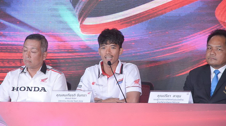 โดยในงานแถลงข่าวครั้งนี้ มี ดร.อารักษ์ พรประภา ประธาน บริษัท ไทยฮอนด้า จำกัด, มร.ยูอิจิ ชิมิซุ ประธานกรรมการบริหาร บริษัท ไทยฮอนด้า จำกัด, นายปรีชา ลาลุน รองผู้ว่าการการกีฬาแห่งประเทศไทย ฝ่ายกีฬาอาชีพและกีฬามวย การกีฬาแห่งประเทศไทย, นายธงชัย วงศ์สวรรค์ ประธานสมาพันธ์กีฬาแข่งรถจักรยานยนต์แห่งประเทศไทย, นายเนวิน ชิดชอบ ประธานสนามช้าง อินเตอร์เนชั่นแนล เซอร์กิต, มร. ยูซึรุ อิชิคาว่า General Manger Motorcycle Racing Division/ Honda Racing Corporation (HRC), มร. ลูซิโอ เชคคิเนลโล่ Team Manager IDEMITSU Honda LCR และ มร. ยูอิจิ คุโจ President บริษัท น้ำมันอพอลโล (ไทย) จำกัด ในนามโกลบอลสปอนเซอร์ เข้าร่วมประกาศความสำเร็จพร้อมสนับสนุนนักบิดไทยอย่างเต็มที่