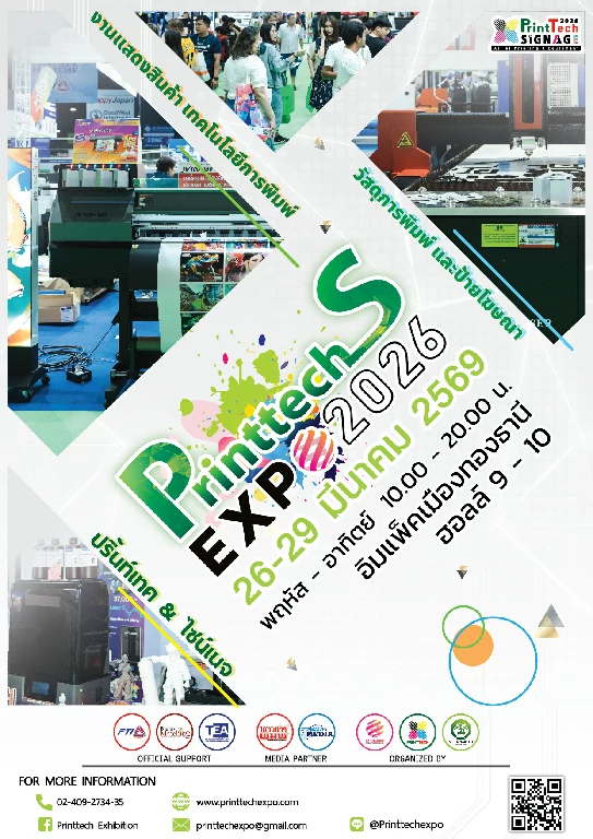 1. งานแสดงสินค้าเทคโนโลยีการพิมพ์ วัสดุงานพิมพ์ และป้ายโฆษณา ครั้งที่ 13 ( The 13th PrintTech & Signage 2026) เป็นงานเปิดสู่โลกแห่งงานพิมพ์แบบครบวงจร พบกับเทคโนโลยี และนวัตกรรมใหม่ด้าน