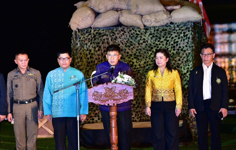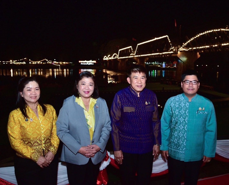ในโอกาสนี้ ดร.วิภารัตน์ ดีอ่อง ผู้อำนวยการสำนักงานการวิจัยแห่งชาติ เป็นประธานในพิธี พร้อมกันนี้ ว่าที่ร้อยตรี ศุภมงคล บูชาถ่ายเทศ รองผู้ว่าราชการจังหวัดกาญจนบุรี กล่าวต้อนรับ เข้าร่วมด่วย นางจารีรัตน์ บุญประดิษฐ รองปลัดองค์การบริหารส่วนจังหวัดกาญจนบุรี รักษาราชการแทนปลัดองค์การบริหารส่วนจังหวัดกาญจนบุรี พร้อมด้วยหัวหน้าส่วนราชการ ทหาร ตำรวจ เจ้าหน้าที่ ประชาชน นักท่องเที่ยวและสื่อมวลชน เข้าร่วมงานฯ สำหรับการควบคุมโดรนแปรอักษรดำเนินการโดย อาจารย์พิศิษย์ มิตรเกื้อกูล นายกสมาคมกีฬาเครื่องบินจำลองและวิทยุบังคับ ณ บริเวณลานการแสดง แสง เสียง สะพานข้ามแม่น้ำแคว อำเภอเมืองกาญจนบุรี จังหวัดกาญจนบุรี