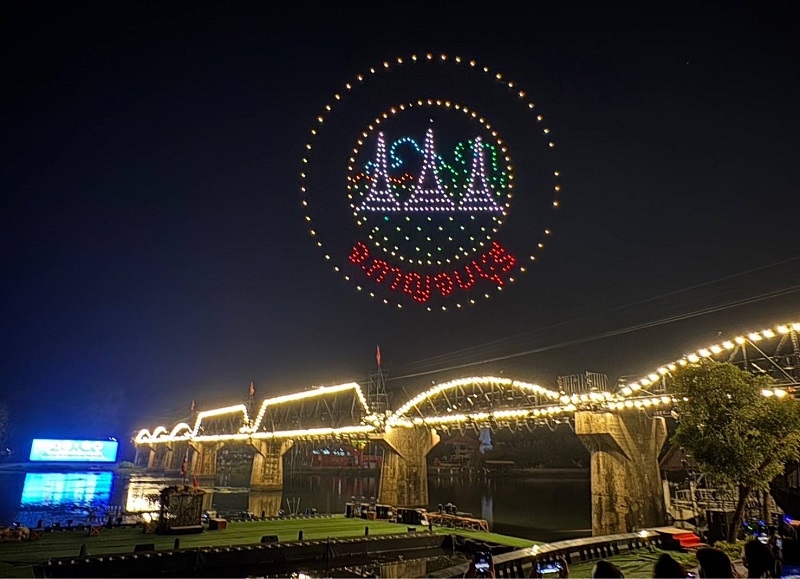 ทั้งนี้ การแสดงบินโดรนในจังหวัดกาญจนบุรีพร้อมด้วยชุดการแสดงแสง เสียง (Light and Sound) ย้อนรอยประวัติศาสตร์สะพานข้ามแม่น้ำแควสมัยสงครามโลกครั้งที่ 2 ในครั้งนี้ใช้ชื่อชุดการแสดง “สะพานข้ามแม่น้ำแคว ตำนานสู่รอยจารึกสู่สันติภาพ” ได้สร้างความประทับใจจากการบินโดรนที่สวยงาม แสงสีเสียงอันน่าตื่นตาตื่นใจ สามารถดึงดูดนักท่องเที่ยวจากทั้งในและต่างประเทศ การแสดงดังกล่าวไม่เพียงแต่ช่วยส่งเสริมภาพลักษณ์ของจังหวัด แต่ยังสร้างประสบการณ์ใหม่ ให้กับผู้เข้าชมได้เป็นอย่างดี นับเป็นผลสำเร็จจากนวัตกรรมการบินโดรนที่สนับสนุนและส่งเสริมการท่องเที่ยวของจังหวัดกาญจนบุรีอย่างแท้จริง