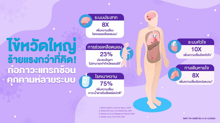 ไข้หวัดใหญ่ สามารถส่งผลกระทบรุนแรงต่อระบบอวัยวะสำคัญและนำไปสู่ภาวะแทรกซ้อนร้ายแรง อาทิ เพิ่มความเสี่ยง 10 เท่า ในการเกิดโรคหัวใจ, 8 เท่า ในการเกิดหลอดเลือดสมอง หรือเพิ่มความเสี่ยงที่จะเป็นเบาหวานถึง 75% จึงควรป้องกันผู้สูงวัย ซึ่งเป็นกลุ่มเปราะบาง ด้วยวัคซีนไข้หวัดใหญ่ที่มีประสิทธิภาพ ปลอดภัย และเหมาะสมตามช่วงวัย ซึ่งนอกจากจะป้องกันจากไข้หวัดใหญ่แล้วยังสามารถลดความรุนแรงจากภาวะแทรกซ้อนได้ด้วย ซึ่งหมายถึง Protection Beyond Flu