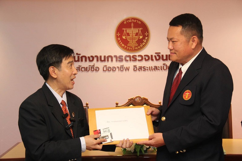 จากนั้นเวลา 11.30 น. นายก่อเกียรติ พาณิชยรมณ์ เดินทางมาที่สำนักงานการตรวจเงินแผ่นดิน (สตง.) เพื่อเข้ายื่นหนังสือถึง นายมณเฑียร เจริญผล ผู้ว่าการตรวจเงินแผ่นดิน กับกรณีพบการทุจริตของหน่วยงานภาครัฐร่วมกับเอกชนดังกล่าว เนื่องจากสำนักงานการตรวจเงินแผ่นดิน เป็นอีกหนึ่งองค์กรที่มีพันธกิจในการตรวจสอบการเงินของแผ่นดินโดยเฉพาะการตรวจสอบความโปร่งใสในการบริหารการเงินของหน่วยงานภาครัฐ ที่มีความเกี่ยวข้องโดยตรงกับกรณีทุจริตดังกล่าวที่เกิดขึ้นและมีความเสียหายมูลค่ามหาศาล โดยมีนายสุทธิพงษ์ บุญนิธิ รองผู้ว่าการตรวจเงินแผ่นดินและโฆษกสำนักงาน เป็นตัวแทนรับมอบหนังสือร้องทุกข์ดังกล่าว
