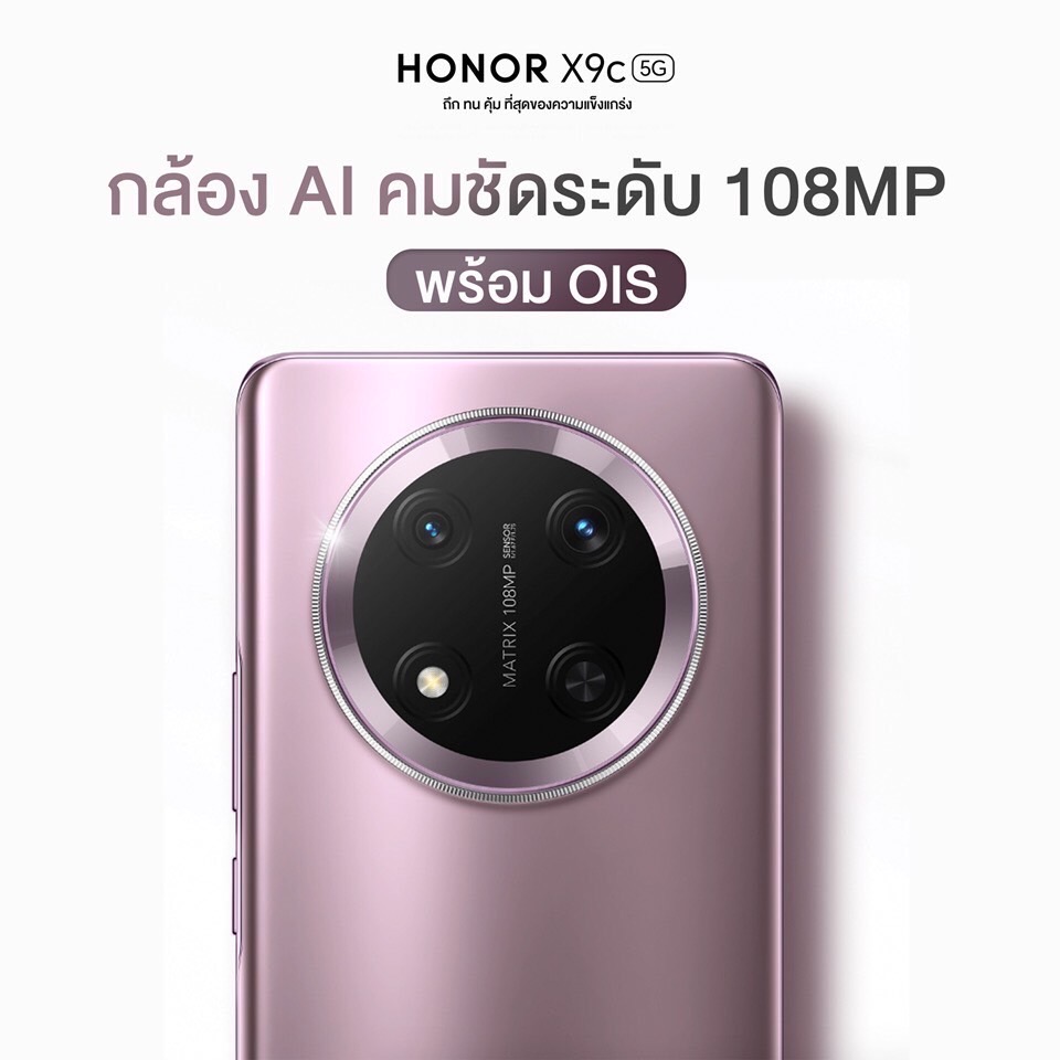 ในปีนี้ HONOR พร้อมสานต่อความสำเร็จด้วยการนำ HONOR X9c 5G สุดยอดสมาร์ตโฟนระดับกลางที่เต็มเปี่ยมไปด้วยคุณภาพและคุณสมบัติสุดล้ำ ด้วยการใช้วัสดุเกรดพรีเมียม แข็งแรง ทนทาน โดดเด่นด้วยหน้าจอและตัวเครื่องกันกระแทกรอบด้าน เสริมประสิทธิภาพการใช้งานยาวนานด้วยแบตเตอรี่ขนาดใหญ่ 6600mAh พร้อมชาร์จเร็ว 66W และกล้อง AI คมชัด ความละเอียดสูง พร้อมระบบป้องกันภาพสั่นไหว OIS เข้ามาจัดจำหน่ายในประเทศไทย เพื่อให้ทุกคนได้สัมผัสกับที่สุดของการใช้งานสมาร์ตโฟนที่เหนือระดับ อีกทั้งยังมอบความพิเศษด้วยการดึงตัวศิลปินลูกทุ่งซุปตาร์ชื่อดัง “ก้อง ห้วยไร่” มาร่วมเป็น HONOR’s friend ซึ่งถือเป็นตัวแทนของคนรุ่นใหม่ที่สะท้อนถึงความมุ่งมั่นในการพัฒนานวัตกรรมที่ใกล้ชิดกับผู้บริโภค”