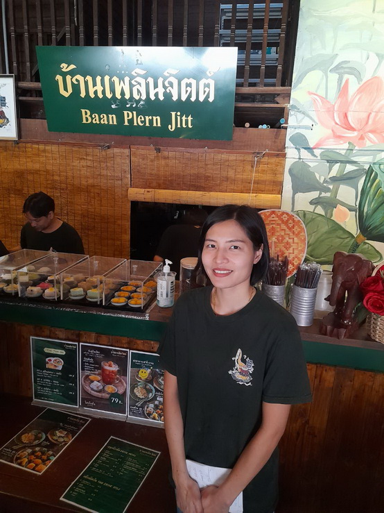 จากแค่เกิดอยากทานผัดไทยกลายเป็นเปิดร้านขายเป็นจริงเป็นจังใน “บ้านเพลินจิตต์” Baan Plern Jitt ที่มีผัดไทยหลากหลายเส้นนำเสนอ แต่ที่เป็นพระเอกในร้านเห็นจะเป็น “ผัดไทยโบราณ” ด้วยความที่เป็นอุตสาหกรรมครอบครัวการบริการดี หากแต่อาหารเสิร์ฟช้าเนื่องจาก “เม สุมนตา สุริยารุ่งเรืองกุล” แจ้งลูกค้าทุกครั้งจนคล่องปากว่า ‘รอนานนิดนึงเพราะผัดทีละกระทะนะ’ แต่จากที่เห็นลูกค้าที่ไปมักอิ่มเอมกับบรรยากาศริมคลองจนลืมอาหารที่รอนาน หรือบางคนหิวที่ร้านก็มีของว่างและขนมไทยไว้ทานคู่กับน้ำสมุนไพรชื่นใจขณะรอผัดไทย ถามว่าอร่อยแค่ไหน…บอกไปก็หาว่าอวย มีเวลาก็พาเพื่อน พาแฟน หรือพาครอบครัวไปทานก็ไม่ไกลจากกรุงเทพฯ แค่ชุมชนคลองบางหลวงนี่เองเปิดจีพีเอสหาก็เจอ โดยเมเล่าถึงการเปิดร้านผัดไทย พร้อมชวนให้ไปเที่ยวเพื่อกระจายรายได้สู่ชุมชน