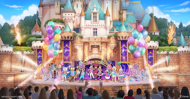 ผู้เข้าชมจะได้รับการต้อนรับจากมิกกี้และผองเพื่อน ดัฟฟี่และผองเพื่อน รวมถึงเจ้าหญิงดิสนีย์ในการแสดงใหม่บริเวณหน้าปราสาทเฉพาะช่วงครบรอบนี้เท่านั้น! การแสดงช่วงกลางวันชุดนี้จะพาผองเพื่อนดิสนีย์มาร่วมปาร์ตี้ที่เต็มไปด้วยพลังและความสนุกสนานหน้าปราสาท Castle of Magical Dreams (คาสเซิล ออฟ เมจิคอล ดรีมส์) ที่งดงาม