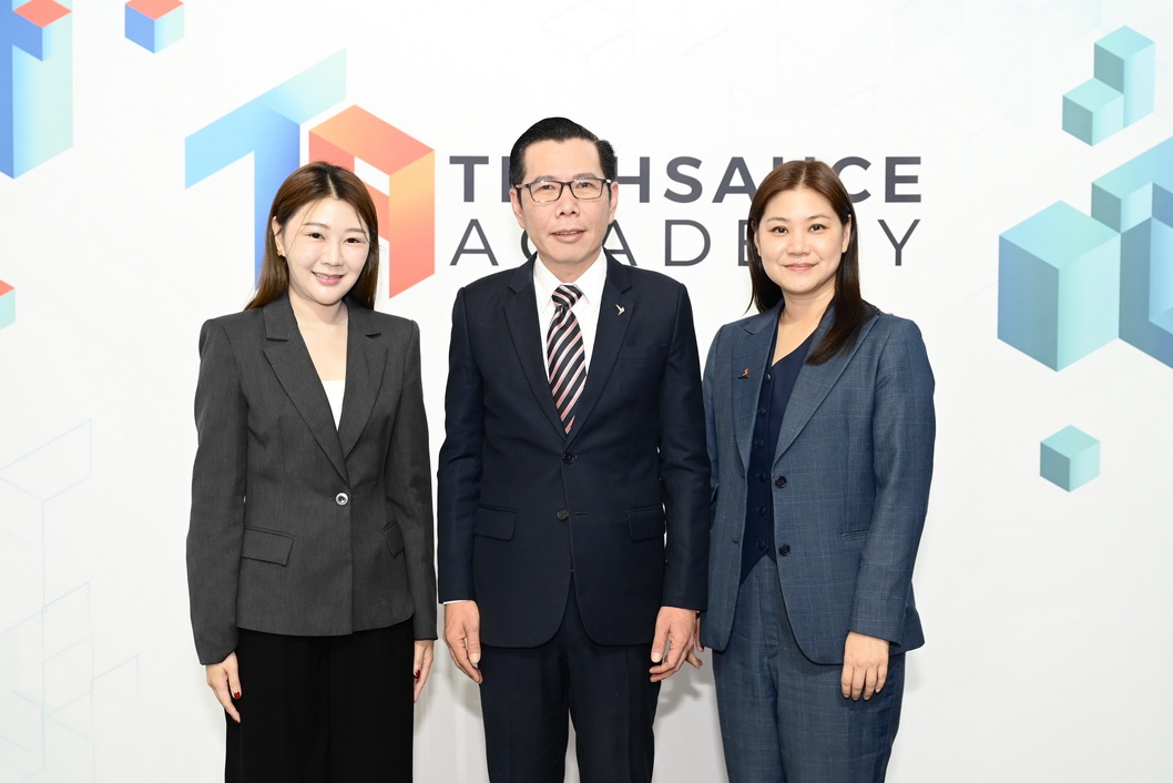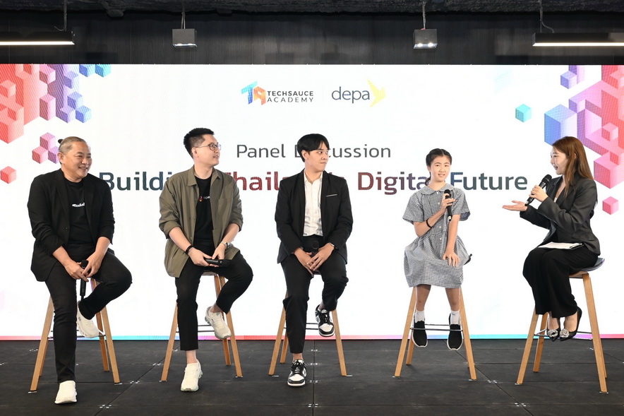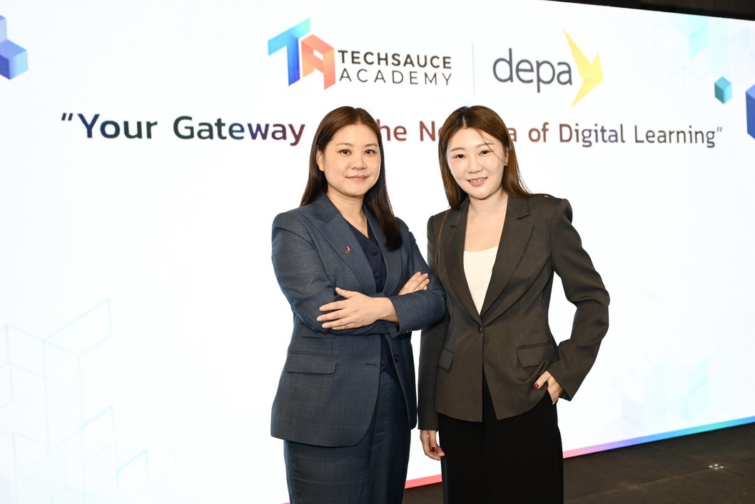 ผศ.ดร.ณัฐพล นิมมานพัชรินทร์ ผู้อำนวยการใหญ่ สำนักงานส่งเสริมเศรษฐกิจดิจทัล หรือ ดีป้า พร้อมด้วย นางสาวอรไท เลิศสุวรรณกิจ ผู้อำนวยการฝ่ายความร่วมมือทางธุรกิจ บริษัท เทคซอส มีเดีย จำกัด ร่วมเปิดตัว Techsauce Academy แหล่งรวบรวมหลักสูตรการเรียนรู้ด้านดิจิทัลที่สอดคล้องกับ Digital Skill Roadmap หรือกรอบแนวทางการพัฒนาทักษะดิจิทัลสำหรับคนไทยในทุกกลุ่มและทุกช่วงวัย โดยมี Enterprise Lab แห่งแรกของไทย หรือโปรแกรมที่เปิดโอกาสให้นักเรียน นักศึกษารับโจทย์จากบริษัทชั้นนำเพื่อพัฒนาโครงการจริง สัมผัสประสบการณ์การทำงานจริง และสร้างผลงานที่สามารถใช้เป็น Portfolio