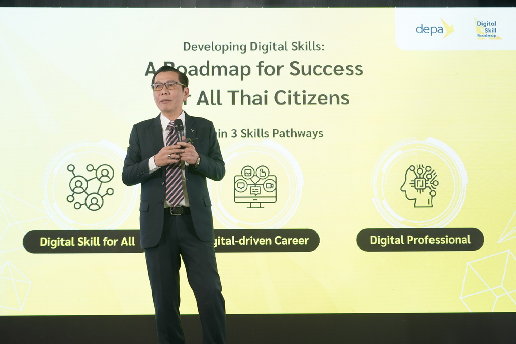 โดย ผศ.ดร.ณัฐพล กล่าวว่า ดีป้า มุ่งพัฒนากำลังคนและบุคลากรดิจิทัลของประเทศ โดยส่งเสริมให้คนไทยสามารถเข้าถึงเทคโนโลยีและนวัตกรรมดิจิทัล เรียนรู้ และประยุกต์ใช้ให้เกิดประโยชน์ พร้อมจัดทำ Digital Skill Roadmap หรือแนวทางการพัฒนาทักษะดิจิทัลสำหรับคนไทยทุกกลุ่มและทุกช่วงวัยใน 3 กลุ่มทักษะสำคัญ ไม่ว่าจะเป็น Digital Skill for All หรือทักษะดิจิทัลสำหรับทุกคน Digital-driven Career หรือทักษะดิจิทัลสำหรับอาชีพยุคใหม่ และ Digital Professional หรือทักษะดิจิทัลสำหรับอาชีพด้านดิจิทัล