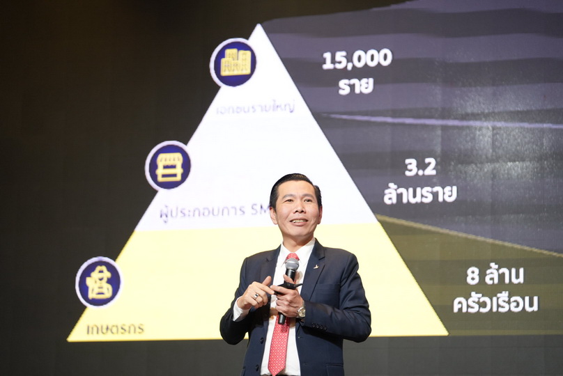 จากนั้น ผศ.ดร.ณัฐพล ได้กล่าวในการบรรยายพิเศษในหัวข้อ เร่งเครื่องเศรษฐกิจดิจิทัลด้วยนวัตกรรม AI: ก้าวสู่อนาคตที่พลิกโฉม ว่า ปัจจุบันเทคโนโลนี AI กำลังเป็นแรงขับเคลื่อนสำคัญของเศรษฐกิจโลก อ้างอิงข้อมูลจาก Gartner บริษัทชั้นนำของโลกในการทำวิจัยและให้คำปรึกษาแก่ผู้บริหารธุรกิจ โดยคาดการณ์ว่า ภายในปี 2027 โซลูชันจาก Generative AI จะเติบโตถึง 40% ด้วยความสามารถในการเชื่อมโยงข้อมูลจากแหล่งต่าง ๆ ได้อย่างมีประสิทธิภาพมากขึ้น ทำให้เกิดการขยายประโยชน์และสนับสนุนการทำงานของมนุษย์ ส่งผลให้ AI กลายเป็นปัจจัยสำคัญในการสร้างความได้เปรียบทางการแข่งขัน พลิกโฉมดิจิทัลสตาร์ทอัพและ SMEs ให้เติบโตอย่างก้าวกระโดด สำหรับประเทศไทย การประยุกต์ใช้ AI ในการพัฒนาเทคโนโลยีและธุรกิจถือเป็นสิ่งจำเป็นสำหรับการเพิ่มศักยภาพทางเศรษฐกิจและผลักดันประเทศสู่ยุคดิจิทัลอย่างเต็มรูปแบบ