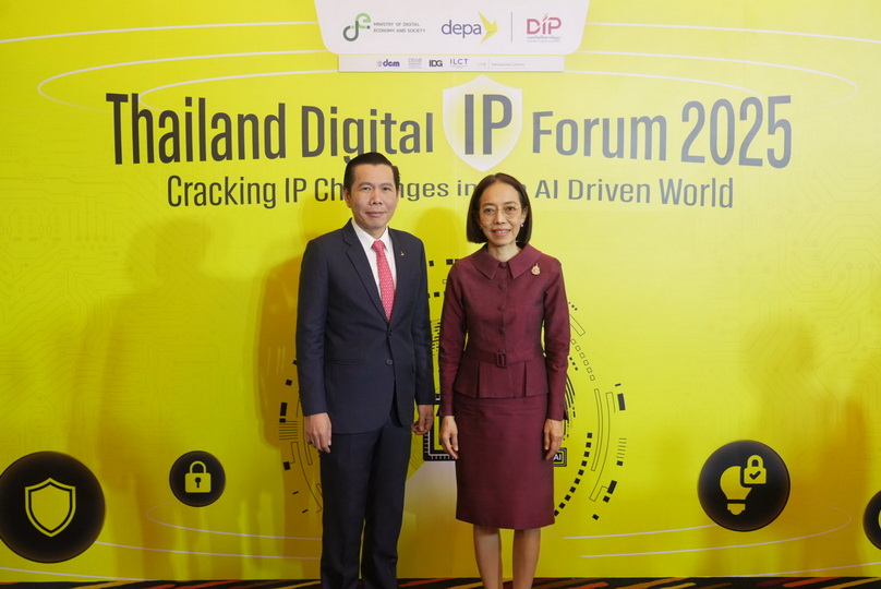 ผศ.ดร.ณัฐพล นิมมานพัชรินทร์ ผู้อำนวยการใหญ่ สำนักงานส่งเสริมเศรษฐกิจดิจิทัล หรือ ดีป้า เป็นประธานเปิดงาน Thailand Digital IP Forum 2025 ที่มาพร้อมแนวคิด Cracking IP Challenges in the AI-Driven World กิจกรรมสัมมนาที่มุ่งเผยแพร่ความรู้และสร้างความตระหนักถึงคุณค่าและความสำคัญของทรัพย์สินทางปัญญาด้านดิจิทัล พร้อมส่งเสริมความเข้าใจเกี่ยวกับการขอรับสิทธิบัตรและอนุสิทธิบัตร ตลอดจนประเด็นสำคัญที่เป็นประโยชน์ต่อผู้ประกอบการ ดิจิทัลสตาร์ทอัพ นักลงทุน บุคลากรทางการศึกษา และประชาชนทั่วไป โดยมีผู้เชี่ยวชาญระดับแนวหน้าของประเทศจากหน่วยงานที่เกี่ยวข้อง ไม่ว่าจะเป็น กรมทรัพย์สินทางปัญญา บริษัท สำนักกฎหมาย ดำเนิน สมเกียรติ และบุญมา จำกัด บริษัท อินเทลเล็คชวล ดีไซน์ กรุ๊ป จำกัด บริษัท เจทีเจบี อินเตอร์เนชั่นแนล ลอว์เยอร์ส จำกัด บริษัท ดิจิทัล คอร์ปอเรท เมเนจเม้นท์ จำกัด และ บริษัท ไอแอลซีที จำกัด ร่วมแลกเปลี่ยนมุมมองและแนวทางการบริหารจัดการทรัพย์สินทางปัญญาเพื่อเพิ่มขีดความสามารถทางการแข่งขันของภาคธุรกิจดิจิทัลไทย