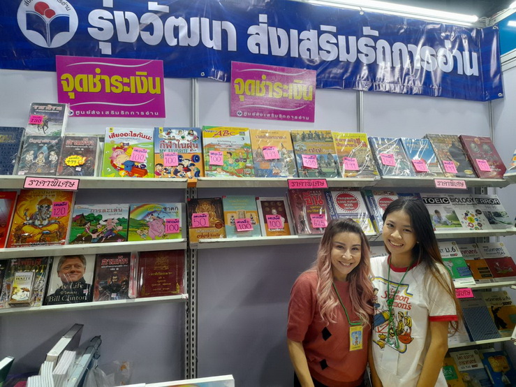 “ร้านของเราเป็นร้านขายส่งและร้านขายปลีกชื่อร้าน “รุ่งวัฒนา-ส่งเสริมรักการอ่าน” ทำมาตั้งแต่เด็ก เป็นอาชีพของที่บ้านแต่ของตัวเองมีกิจการส่วนตัวต่างหาก ก็คือขายหนังสือเหมือนกันแต่เปิดจำหน่ายใน Shopee ชื่อ runglanlung2517 และอีกร้าน horabookshop ค่ะ ปกติถ้าไม่มาเปิดบูธในงานร้านตั้งอยู่ถนนนครสวรรค์ แยกผ่านฟ้าลีลาศ แถว ๆ สน.นางเลิ้ง เปิดวันจันทร์ – วันเสาร์ เวลา 8.00 – 16.30 น. ถ้าไปจะเจอดาวขายอยู่ที่นั่นค่ะ หนังสือที่นำมาจำหน่ายในงานมีหลากหลายตั้งแต่ เด็กเล็กจนถึงเด็กโต และก็มีหลายแนว อย่างถ้าเด็กเล็กเรียนเตรียมอนุบาล A B C จนถึงเตรียมสอบป.และประถม แล้วก็มัธยม รวมถึงเข้ามหาลัยด้วย  ส่วนหนังสือที่ได้รับความสนใจตลอดส่วนใหญ่ก็เป็นหนังสือเด็กอนุบาลหรือเตรียมค่ะ เพราะเด็กอนุบาลยังต้องใช้หนังสืออยู่ ให้เด็ก ๆ เปิดแท็บเล็ตคงเป็นไปไม่ได้ หรือคัดเขียนเริ่มต้นให้เขียนในแท็บเล็ตคงเป็นไปไม่ได้เหมือนกัน หนังสือสำหรับเด็กจึงเป็นกลุ่มผู้ใหญ่ต้องการอยู่ตลอด แล้วก็อย่างนิยายก็ยังมีคนอ่าน เพราะคนที่เขารักหนังสือจริง ๆ จะเปิดอ่านแบบกระดาษมากกว่าเปิดแท็บเล็ต เพราะเรามีความรู้สึกเปิดแท็บเล็ตอ่านหนังสือมาก ๆ ตัวเราเองยังแสบตายังปวดตาแต่หนังสือสมัยนี้มีกระดาษถนอมสายตาด้วย ตามหาหนังสือแนวไหนมาเจอกันได้นะคะร้านรุ่งวัฒนา-ส่งเสริมรักการอ่าน บูธ G16 ค่ะ
