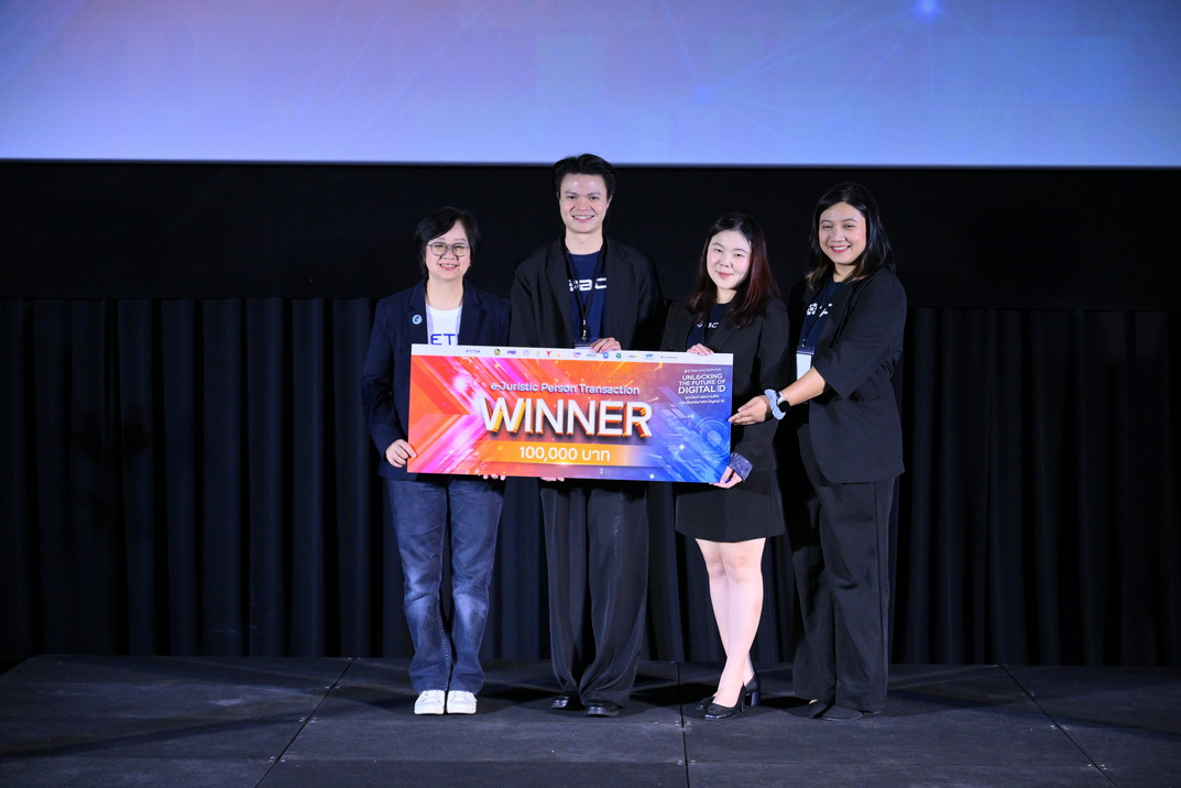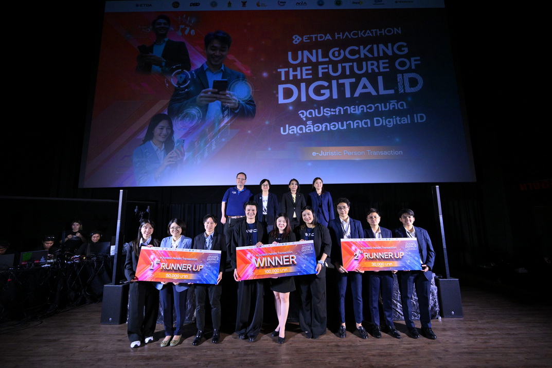 หลังจากการพิจารณาอย่างเข้มข้น จากแนวคิดโซลูชันที่หลากหลายที่มุ่งมั่นสร้างสรรเพื่อตอบโจทย์ภาคธุรกิจ ตั้งแต่การลดความยุ่งยากซับซ้อนของเอกสาร การยืนยันตัวตนผู้มีอำนาจลงนาม ไปจนถึงการสร้างความเชื่อมั่นในการทำสัญญาระหว่างองค์กร ในที่สุดผลการแข่งขัน ETDA Hackathon: Unlocking the Future of Digital ID โจทย์ที่ 1 “e-Juristic Person Transaction” ก็ได้ทีมผู้ชนะคว้ารางวัลชนะเลิศ คือ ทีม BCI: IdentityX กับผลงาน VerifyX แพลตฟอร์มสำหรับ e-Juristic Transaction การทำธุรกรรมของนิติบุคคลแบบอิเล็กทรอนิกส์ ครอบคลุมการทำธุรกรรมนิติบุคคล โดยเน้นยกระดับการออกหนังสือรับรองทางการเงินอิเล็กทรอนิกส์ คว้าเงินรางวัล 100,000 บาท และประกาศนียบัตรจาก ETDA ตามมาด้วยรางวัลรองชนะเลิศอันดับ 1 คือ ทีม TDID กับผลงานแพลตฟอร์ม TrustBiz ช่วยพัฒนาให้การใช้เอกสารอิเล็กทรอนิกส์ เชื่อถือได้ ใช้งานได้จริง เป็น Solution การลงลายมือชื่อดิจิทัลสำหรับนิติบุคคล ได้รับเงินรางวัล 50,000 บาท และประกาศนียบัตรจาก ETDA และรางวัลรองชนะเลิศอันดับ 2 คือ ทีม Creden จากผลงานแพลตฟอร์ม e-Transaction ครบวงจรตั้งแต่ e-Signature, e-KYC, e-Stamp duty ไปจนถึง e-KYB เพื่อช่วยให้นิติบุคคลยืนยันตัวตนและทำธุรกรรมอิเล็กทรอนิกส์ได้อย่างปลอดภัย รวดเร็ว โปร่งใส และตรวจสอบได้ ได้รับเงินรางวัล 30,000 บาท และประกาศนียบัตรจาก ETDA นอกจากนี้ ทุกทีมที่ได้รับรางวัลยังมีโอกาสในการต่อยอดนวัตกรรมสู่การใช้งานจริงร่วมกับ ETDA และพาร์ทเนอร์ทั้งภาครัฐและเอกชน รวมถึงโอกาสในการนำเสนอผลงานบนเวที Tech Showcase Stage ในงาน Techsauce Global Summit 2025 อีกด้วย