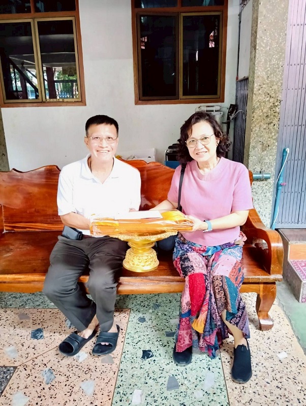 พวกเราถวายปัจจัยให้กับหลวงพ่อสงวนไปเป็นเงินสด 20;000 บาทและผ้าไตร พร้อมทั้งอาหาร/ขนม/ข้าวของที่ซื้อมาร่วมสองหมื่นกว่า มอบให้เป็นเสบียงแก่เด็กๆ ซึ่งอีกไม่กี่วันก็จะเดินทางกลับมา ในช่วงนี้ปิดเทอม เลยพากันกลับบ้านจะเหลือเพียงไม่กี่คนที่อยู่ เราจึงเห็นเด็กมีน้อย อย่างน้อยก็ลดค่าใช้จ่ายในช่วงนี้ พวกเรากราบลาหลวงพ่อสงวน เพื่อเดินทางไปยังวัดบางนมโค ของ”หลวงพ่อปาน”วัดดังแห่งอำเภอเสนา จังหวัดพระนครศรีอยุธยา ในอดีตวัดนี้ดังจากเครื่องรางของขลังหลวงพ่อปาน วัดนี้เป็นวัดเก่าแก่อีกวัดหนึ่งสร้างในสมัยกรุงศรีอยุธยา และ เป็นวัดที่พวกพม่าเคยมากวาดต้อนผู้คนในถิ่นฐานแห่งนี้ ในบริเวณใกล้เคียงของวัดบางนมโค แถวนี้เจริญมาก บ้านเรือนหนาแน่นใกล้ๆยังมีวัดใหญ่ๆอย่างวัดโคมทอง ที่น่าสนใจยิ่ง แต่เราต้องรีบเดินทางกลับ เพราะการทำบุญของเราได้สิ้นสุดลงแล้ว ทุกคนเป็นปลื้มอิ่มอกอิ่มใจที่ได้มาร่วมทำบุญในครั้งนี้ ไม่ใช่เรื่องบังเอิญ แต่บุญกรรมนำแต่งดึงพวกเรามารวมตัวกันในวันนี้ สาธุบุญร่วมกันด้วยการเสียสละจาคะแบบบริสุทธิ์ใจ ขอบุญกุศลที่ร่วมทำบุญด้วยกันในวันนี้จงส่งผลบุญอานิสงส์แห่งความสุข สุขภาพแข็งแรงกันถ้วนหน้าเทอญ.