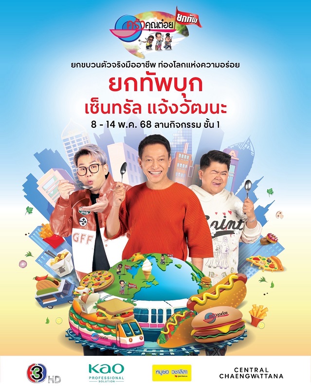 ”ครัวคุณต๋อยยกทัพ“ บุก เซ็นทรัล แจ้งวัฒนะ บริเวณลานกิจกรรม ชั้น 1 วันที่ 8 – 14 พฤษภาคม 2568 เวลาเปิด-ปิด วันจันทร์ – พฤหัสบดี 10.30 – 21.00 น. / วันศุกร์ 10.30 – 22.00 น. / วันเสาร์ – วันหยุดนักขัตฤกษ์ 10.00 –22.00 น. / วันอาทิตย์ 10.00 – 21.00 น.