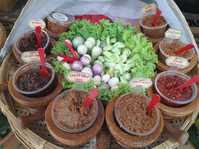 ที่ร้านมี ปลาร้าสับ เผ็ดน้อย และ ปลาร้าบอง เผ็ดแซ่บ สองตัวนี้ที่เป็นซิกเนเจอร์ของเรา ปลาร้าบองเผ็ดแซ่บวัยรุ่นจะชอบเพราะทานเผ็ด นอกจากนี้ก็มีน้ำพริกแดงโบราณ / ตาแดง เผ็ดแซ่บ / ตาแดงแมงดา / นรกกากหมู ฯลฯ ถ้ามาเที่ยวตลาดย้อนยุคบ้านระจันเชิญมาอุดหนุนปลาร้าสับหนวดเขี้ยวสิงห์บุรีนะครับ ที่ร้านมีน้ำพริกหลายอย่างเลยครับ”