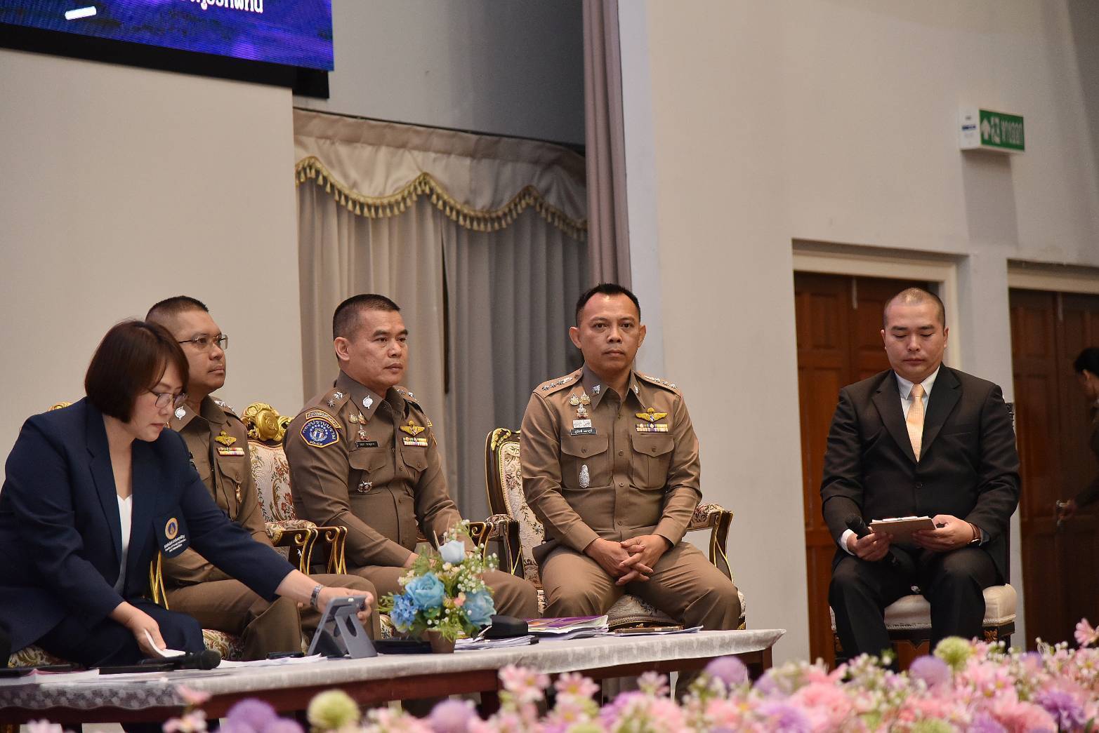 ทั้งนี้มีผู้บังคับบัญชาเข้าร่วมการเสวนาประกอบด้วย พล.ต.ท.นัยวัฒน์ ผะเดิมชิต ผบช.ภ.7, พล.ต.ท.เสนิต สำราญสำรวจกิจ ผบช.รร.นรต., พล.ต.ต.โชคชัย งามวงศ์ รอง ผบช.ภ.1, พล.ต.ต.อุทัย กวินเดชาธร รอง ผบช.ภ.7พล.ต.ต.ศักดิ์รพี เพรียวพานิช รอง ผบช.รร.นรต. และ ผบก.ภ.จว.,รอง ผบก.ภ.จว.(สอบสวน) ,ผกก. และข้าราชการตำรวจผู้ปฏิบัติงานด้านสอบสวน ในสังกัด น.,ภ.1 และ ภ.7 ,คณะอาจารย์ รร.นรต. , อดีตข้าราชการตำรวจผู้มีประสบการณ์ด้านงานสอบสวน และประชาชนทั่วไปเข้าร่วมเสวนาอย่างพร้อมเพรียงกัน
