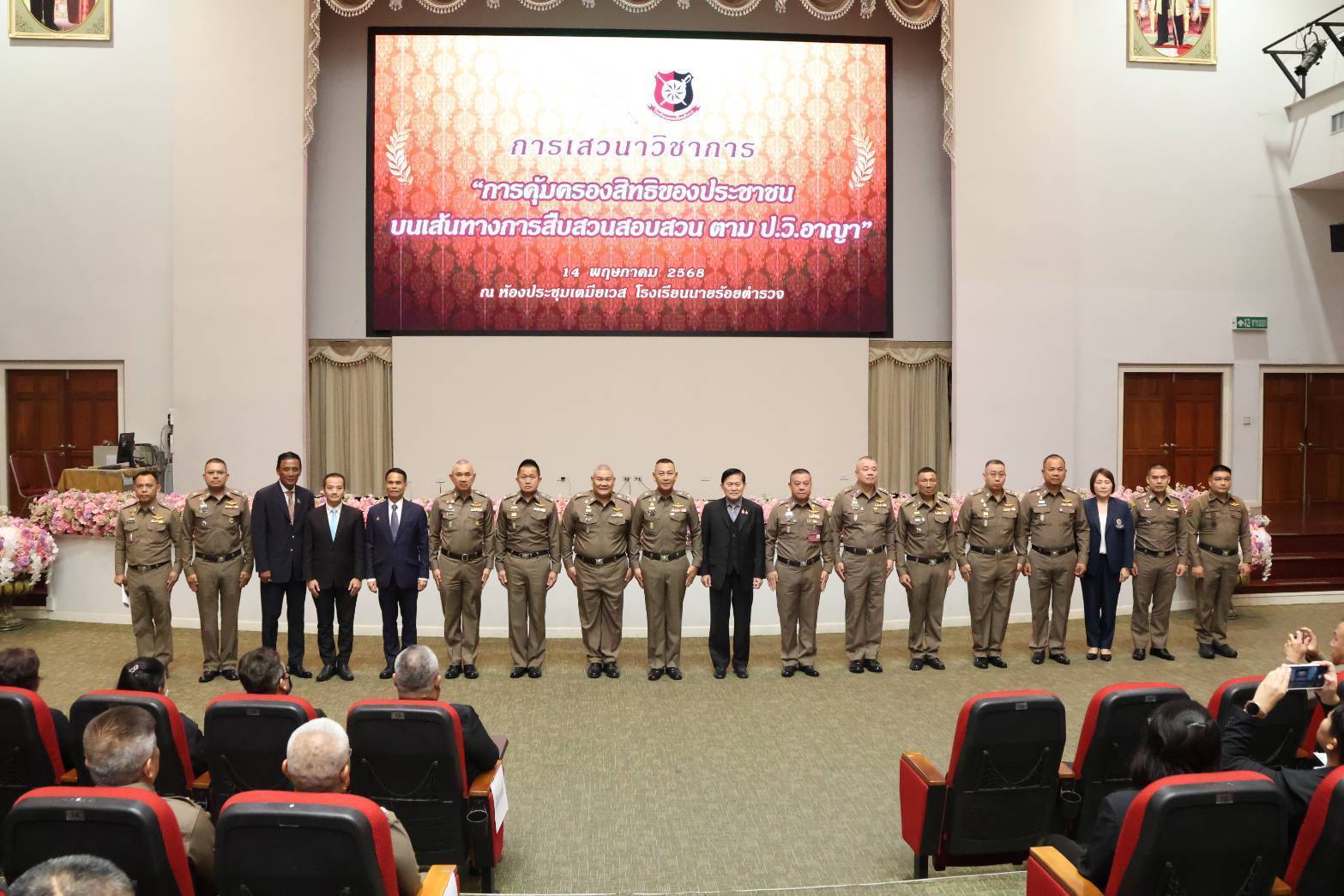 วันที่ 14 พ.ค.68 ที่โรงเรียนนายร้อยตำรวจ อ.สามพราน จ.นครปฐม พล.ต.อ.กิตติ์รัฐ พันธุ์เพ็ชร์ ผบ.ตร. เป็นประธานในการเสวนาเชิงวิชาการ ในหัวข้อ “การคุ้มครองสิทธิของประชาชน บนเส้นทางการสืบสวนสอบสวนตาม ป.วิ.อาญา” พร้อมด้วย พล.ต.ต.สุรสิทธิ์ สังขพงศ์ ผู้ช่วยรัฐมนตรีประจำสำนักนายกรัฐมนตรี, พล.ต.อ.นิรันดร เหลื่อมศรี รอง ผบ.ตร.(กม.), พล.ต.อ.อัคราเดช พิมลศรี ที่ปรึกษาพิเศษ ตร., พล.ต.ท.อิทธิพล อัจฉริยะประดิษฐ์ รอง จตช.รรท.ผู้ช่วย ผบ.ตร.(ปป 3), พล.ต.ท.สมประสงค์ เย็นท้วม ผู้ช่วย ผบ.ตร. (สส 5), พล.ต.ท.อิทธิพล อิทธิสารรณชัย ผู้ช่วย ผบ.ตร.(มค 3)