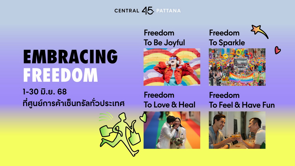ตลอดเดือนมิถุนายน สนุกกับ Inclusive Pride Activities แบบ Gen-tailored ที่ออกแบบตามแต่ละเจนฯ ได้แก่ 1) Freedom to be Joyful: 24 จุดถ่ายรูปสีสันแห่งเสรีภาพ, 9 จุดกิจกรรม ART & PLAY Rainbow เปลี่ยนสีขาวเป็นสีรุ้ง ปลุกพลังสร้างสรรค์และเปิดกว้างทางความคิด 2) Freedom to Sparkle: โชว์สุดตระการตาที่เซ็นทรัล 22 สาขา, Meet & Greet กับศิลปิน Boy Love สุดฮอต ที่เซ็นทรัล อีสต์วิลล์, รามอินทรา และเวสต์วิลล์ และงานวิ่งฉลองความเท่าเทียม Pride Run เซ็นทรัล สุราษฎร์ 3) Freedom to Heart & Heal: ร่วมพูดคุยแลกเปลี่ยนมุมมอง กับ 5 เวทีเสวนา Pride Talk และ แคมเปญ “Beyond the Rainbow’ ชวนแชร์มุมมองใหม่ ถึงอนาคตของโลกที่ Beyond Gender อย่างแท้จริง ผ่าน Sharing บอร์ด 4) Freedom to Feel & Have Fun: Pride Market และ Mini Concerts 10 สาขา, Speed Dating “Soulmate สายรุ้ง” ที่เซ็นทรัลเวิลด์, พัทยา, ภูเก็ต และเชียงใหม่ เพียงลงทะเบียนผ่าน CENTRAL X ใครจะรู้…รักแท้ของคุณอาจรออยู่ที่เซ็นทรัล โหลดแอป CENTRAL X ได้แล้ววันนี้ ผ่าน Apple Store and Google Play Store https://central-x.app.link/O2O-PR-PrideForAll2025