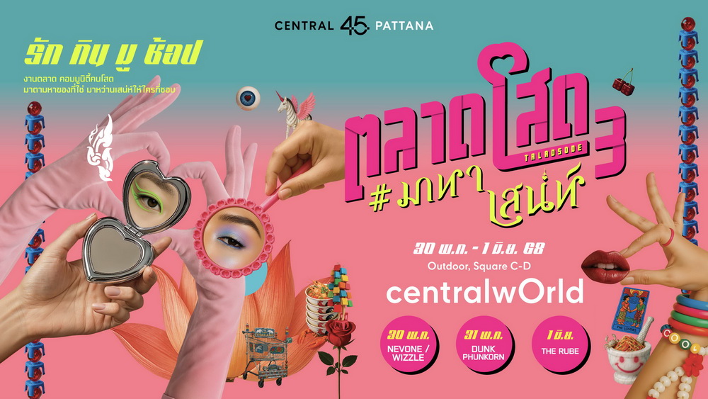 Love with Pride 2025” 31 พ.ค. 68: “อัพสเกลความยิ่งใหญ่ขบวนพาเหรด เปิดพื้นที่แห่งเสรีภาพให้ชาวcentralwOrld citizens ร่วมฉลองความหลากหลายอย่างภาคภูมิ พบ Extravaganza Performance Show จากเหล่า Drag Queen ตัวแม่แห่งวงการนำโดย House of Heals และลูกเกด เมทินี กิ่งโพยม ผู้นำวงการ LGBTQIA+ เมืองไทย พร้อมโชว์สุดพิเศษจาก 2 สาวสุดฮอต “ฟรีน–เบ็คกี้” ร่วมสร้างสีสันในงาน “centralwOrld Love with Pride 2025” ท่ามกลางคนบันเทิงหลายร้อยชีวิตที่พร้อมใจเดินแบบสนับสนุนความเท่าเทียมทุก ห้ามพลาด Pride Talk by Galderma มอบความรู้เรื่องการดูแลตัวเองและเสริมความมั่นใจ, ยิ่งใหญ่ จุดฟินาเล่ของ “Bangkok Pride Parade 2025” 1 มิ.ย. 68: ต้อนรับขบวนพาเหรดผู้ร่วมงานกว่า 300,000 คน หน้าเซ็นทรัลเวิลด์ ร่วมฉลองการประกาศใช้จริงของกฎหมายสมรสเท่าเทียมในธีม “Born This Way” จุดประกายความภาคภูมิใจในตัวตน พร้อมพลังแห่งความรักที่ไม่มีข้อจำกัด, “ตลาดโสด 3 #มาหาเสน่ห์ 2568” รวมพลังคนโสดใจกลางเมือง 30 พ.ค. – 1 มิ.ย. นี้ ที่ลาน Square C – D กับคอมมูนิตี้ของคนโสดมาตามหาของที่ใช่ หว่านเสน่ห์ให้คนที่ชอบ เปิดไพ่ เช็คดวงหาคู่ ขอพร พระพิเนศและพระตรีมูรติ พบกับศิลปิน ‘ดัง พันกร’ – The Rube – Wizzle – Nevone โดยค่าย Spicy Disc สร้างบรรยากาศให้หัวใจเต้นแรงตลอด 3 วันเต็ม