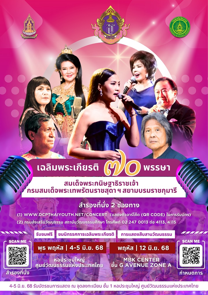 กระทรวงวัฒนธรรม โดยกรมส่งเสริมวัฒนธรรม จัดงานเฉลิมพระเกียรติ ๗๐ พรรษา สมเด็จพระกนิษฐาธิราชเจ้า กรมสมเด็จพระเทพรัตนราชสุดาฯ สยามบรมราชกุมารี : เทิดพระเกียรติ “วิศิษฏศิลปิน” สืบสานมรดกวัฒนธรรมไทย โดยงานแถลงข่าวจะมีขึ้นในวันพฤหัสบดีที่ 29 พฤษภาคม 2568 เวลา 13.00-14.20 น.ณ อาคารอเนกประสงค์ ศูนย์วัฒนธรรมแห่งประเทศไทย โดยมี นางสาวสุดาวรรณ หวังศุภกิจโกศล รัฐมนตรีว่าการกระทรวงวัฒนธรรม เป็นประธานงานแถลงข่าว พร้อมด้วย นายประสพ เรียงเงิน ปลัดกระทรวงวัฒนธรรม, นายกมล ทัศนาญชลี ศิลปินแห่งชาติ สาขาทัศนศิลป์ (จิตรกรรมและสื่อผสม) พุทธศักราช 2540, รศ.บัวผัน สุพรรณยศ อุปนายกสมาคมศิลปินเพลงพื้นบ้านภาคกลางประเทศไทย ผู้แทนสมาคมศิลปินพื้นบ้าน, คุณสุนารี ราชสีมา ศิลปินรับเชิญ และ นายอนุชา สีฟัก ผู้กำกับการแสดง คณะคชมุข สถาบันบัณฑิตพัฒนศิลป์