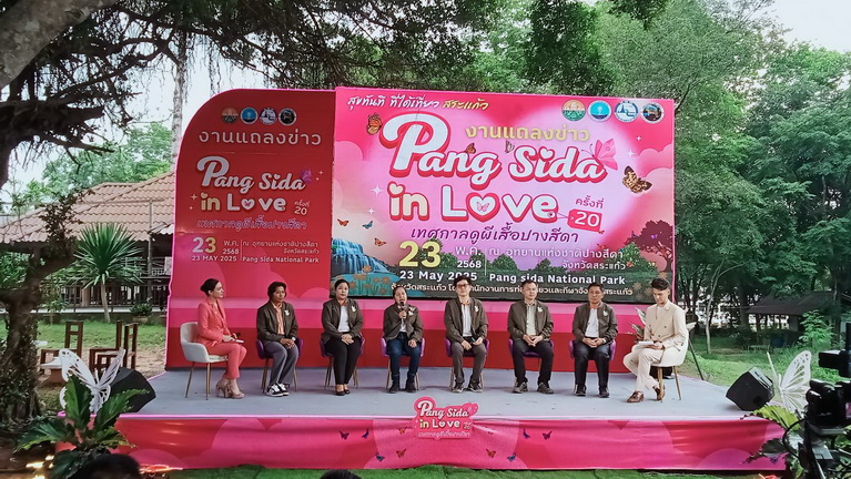 เมื่อเวลา 14.00 น.ของวันที่ (23 พ.ค.68) ณ อุทยานแห่งชาติปางสีดา ตำบลท่าแยก อำเภอเมืองสระแก้ว จังหวัดสระแก้วนางพัชรี ศาลาศิลป์ รองผู้ว่าราชการจังหวัดสระแก้ว เป็นประธานแถลงข่าวโครงการส่งเสริมและพัฒนาการท่องเที่ยวเชิงนิเวศ กิจกรรมเทศกาลดูผีเสื้อครั้งที่ 20 ประจำปี 2568 ซึ่งจัดขึ้นโดยนางสาวซลชา บุญโต ท่องเที่ยวและกีฬาจังหวัดสระแก้ว นายญาณวุฒิ แสงวงศ์ หัวหน้าอุทยานปางสีดานายจักรกฤษณ์ ธนะนพรัตน์ นายอำเภอเมืองสระแก้วนางสาวพิมพ์จับทร์ นาคฤทธิ์ รองผู้อ่านวยการการท่องเที่ยวแห่งประเทศไทย สำนักงานนครนายก มีหัวหน้าส่วราชการ พ่อค้า ประชาชนในพื้นที่ร่วมแถลงข่าว ซึ่งสำนักงานการท่องเที่ยวและกีฬาจังหวัดสระแก้ว ได้ดำเนินโครงการส่งเสริมและพัฒนาการท่องเที่ยวเชิงนิเวศ กิจกรรมเทศกาลดูผีเสื้อปางสีดา จังหวัดสระแก้ว (ครั้งที่ 20) ประจำปีงบประมาณ พ.ศ. 2568 โดยมีวัตถุประสงค์ เพื่อส่งเสริมประชาสัมพันธ์การท่องเที่ยวของจังหวัดสระแก้ว สร้างรายได้จากการท่องเที่ยว ตลอดจนเพื่อสร้างภาพลักษณ์ที่ดีทางการท่องเที่ยว ทั้งนี้การจัดกิจกรรมดังกล่าว เพื่อเป็นการประชาสัมพันธ์สร้างการรับรู้ให้กับนักท่องเที่ยวจึงได้กำหนดจัดงานแถลงข่าวเทศกาลดูผีเสื้อปางสีดา (ครั้งที่20) และเพื่อให้การดำเนินกิจกรรมดังกล่าวเป็นไปด้วยความเรียบร้อย เกิดประสิทธิภาพสูงสุด โดยจะจัดกิจกรรมนี้ขึ้นในวันที่ 6-8 มิ.ย.68 ที่จะถึงนี้