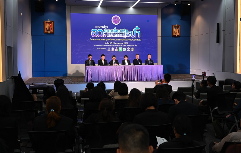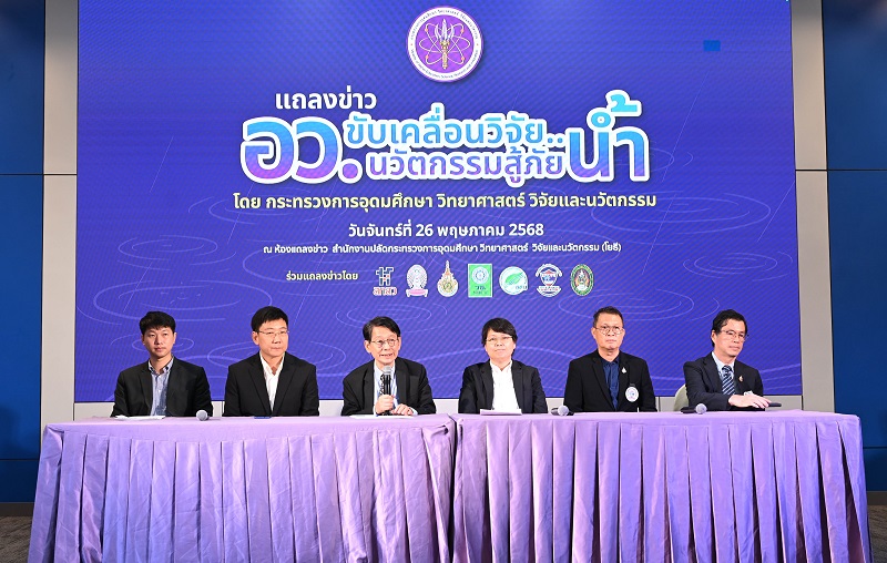 เมื่อวันที่ 26 พฤษภาคม 2568 น.ส. ศุภมาส อิศรภักดี รัฐมนตรีว่าการกระทรวงการอุดมศึกษา วิทยาศาสตร์ วิจัยและนวัตกรรม (อว.) แถลงข่าว “อว. ขับเคลื่อนวิจัยและนวัตกรรมสู้ภัยน้ำ” ณ กระทรวง อว. โดยมี ศ.ดร.ศุภชัย ปทุมนากุล ปลัดกระทรวง อว. และผู้บริหารกระทรวง อว. เข้าร่วม ที่ห้องแถลงข่าวชั้น 1 อาคารพระจอมเกล้า กระทรวง อว.